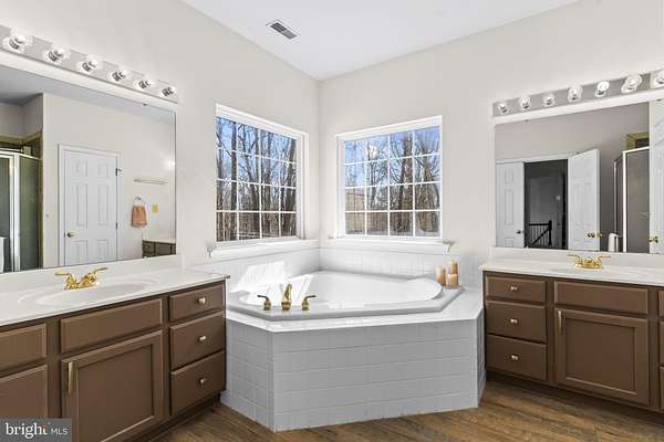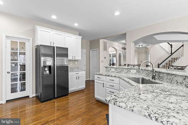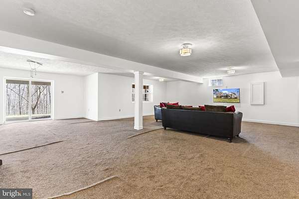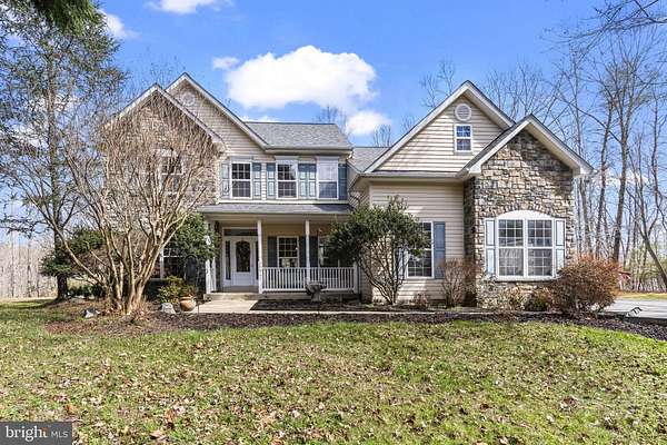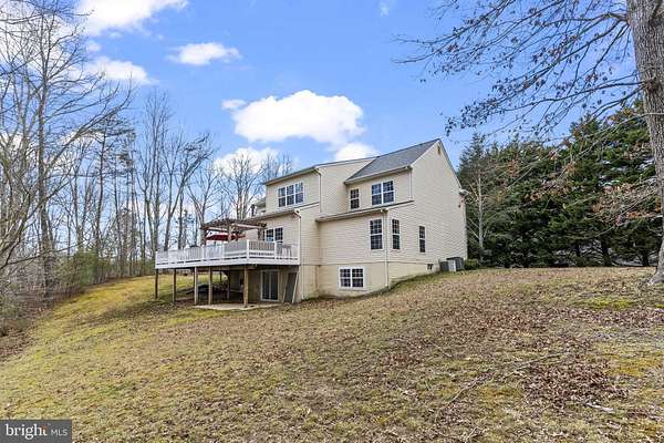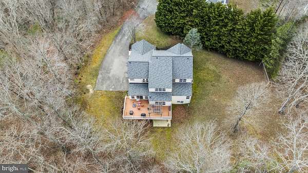 This private 2.58-acre property is surrounded by mature trees, offering a peaceful and secluded setting. The impressive colonial home features an open floor plan with spacious rooms across all three levels, designed for both comfortable living and entertaining. The main level welcomes you with a dramatic two-story foyer and features a wide-open layout, including a formal dining room and a living/music room, both accented with tray ceilings, crown molding, and wainscoting. The generously sized family room, enhanced by a 4-foot bump-out, flows seamlessly into the kitchen and eat-in area. A main-level primary suite provides the perfect space for an in-law or au pair. The upper level overlooks the 2- story foyer, and boasts the luxurious primary suite, with vaulted ceilings, a dressing room, soaking tub, dual sinks, a separate shower, and expansive owner's closets. The two other spacious bedrooms share a hallway bathroom. The walkout lower level is filled with natural light and offers incredible versatility, featuring a spacious family room, a large bonus room perfect for a bedroom or office, a full bathroom, a kitchenette, and additional space for a game room or recreation area. Additional highlights include custom drywall with rounded corners, granite countertops, a large kitchen island with seating area, stainless steel appliances, a gas stove, a large walk-in pantry, vaulted ceilings, hardwood floors, a beautiful stone front, and a covered front porch. Step outside to the expansive Trex deck-ideal for entertaining, grilling, or simply relaxing while enjoying the serene surroundings.