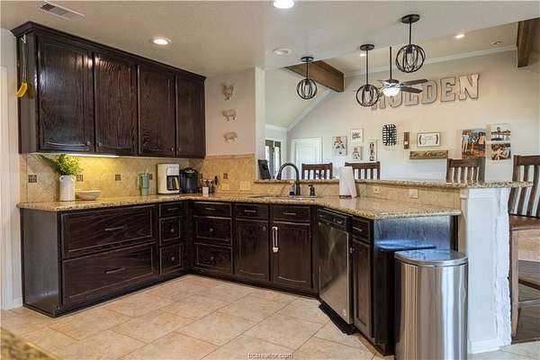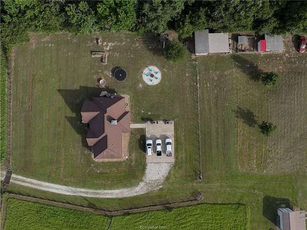 Welcome to 27985 FM 831 - a beautifully crafted 4 bed, 2 bath Tilson home nestled on 7 cleared, AG-exempt acres just 3 miles from Oakwood. This custom-built gem offers 1,895 sq ft of living space (2,175 sq ft total with porches) and features stunning touches like cathedral ceilings with cedar beams, a stone-accented bar, large windows, and a cozy wood-burning fireplace. The kitchen boasts custom cabinetry, granite countertops, stainless steel appliances, and a walk-in pantry. The spacious master suite includes his and her closets, double vanities, a walk-in shower, and a deep soaking tub. Outside, you'll find a 30x40 slab ready for a shop, garage, or extended patio, plus a chicken coop, pig pen, a 300 sq ft air-conditioned building perfect for a home office or studio, storage shed, and carport. With its prime location, newer construction, and versatile small acreage, this property is a rare find that won't last long!