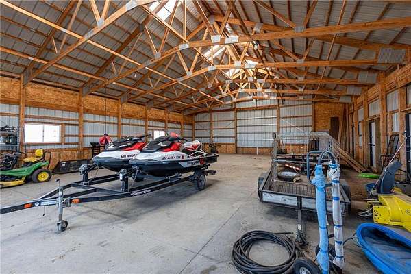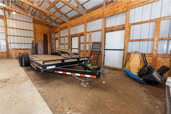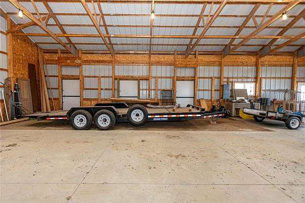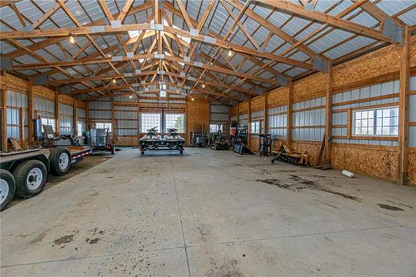 The property features a spacious 42x60 horse barn, 3- top open stable doors, sand bedding base, with a hydrant, 200-amp electrical service, and two large sliding garage doors, ideal for livestock, storage, or workshop use or easily finished out as a barndominium. Additionally, a 34'x48' heated RV shed provides year-round convenience with a 16-foot garage door, in-floor heat powered by an electric boiler, concrete floor, and built-in floor drains. Two 50-amp RV hookups make this property ready for multiple campers or guests. A private well is already in place, adding to the property's functionality and appeal.