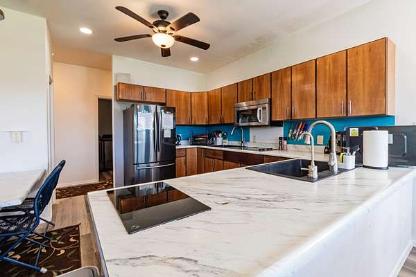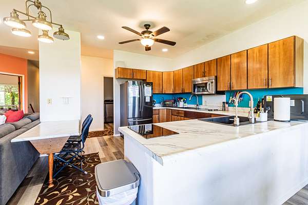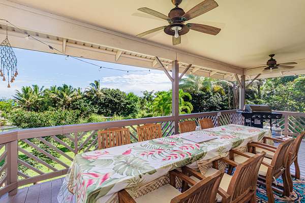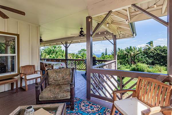 This charming 3 bedroom, 2 bathroom home is nestled on a vibrant fruit farm in Honomu, just minutes from waterfalls and historic Hilo town.This property gives you the flexibility to use as a vacation rental or full time residence. Home has a good air conditioning system. Also has a fully updated solar panel system with grid-tie net-metering . Wake up to ocean views and enjoy fresh tropical fruit from your own backyard Jackfruit, Papaya, Tree Spinach, Carob, Bamboo, Mangosteen, Breadfruit, Rambutan, 30+ Coconut, 15+ Avocado, White, Yellow & Pink Guava, Acai, Ice Cream Bean, Marang, Cacao, Coffee, Surinam Cherry, 10+ types of Banana Incl. Thai, Hawaiian, Brazilian, Indian, White, Yellow, Chocolate & Red Zapote, Durian, Pejibaye, 18 Heart of palm, 8 types of Taro, Oranges, Lemons, 4 types of Sugarcane, Mango, Lilikoi & more. The interior features an open floor plan with ample natural light and a spacious kitchen. Enjoy the views from the expansive lanai. Whether you're looking for a serene family getaway or a unique income generating property, this home offers island living at it's finest. *Sale to include the adjoining vacant lot 28-236 Akaka Falls Rd. TMK:3-2-8-13-64 Total acreage: 4.95 acres