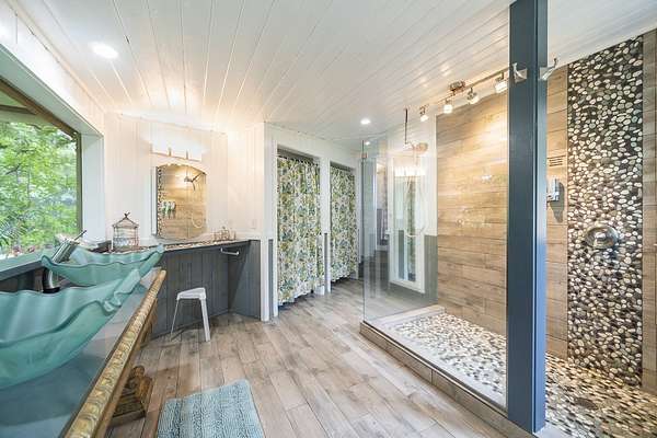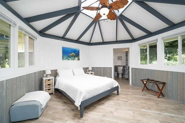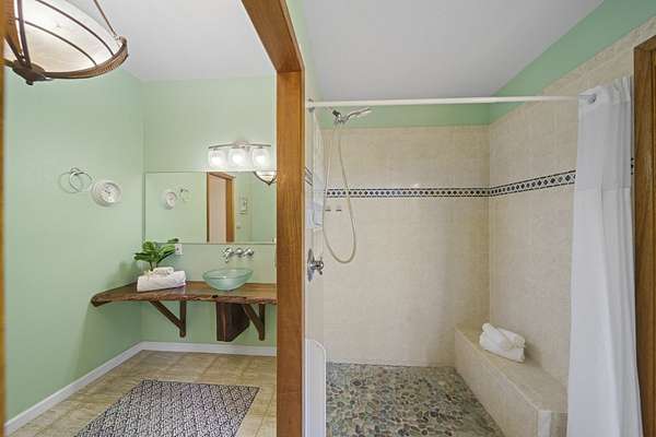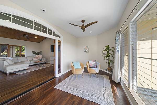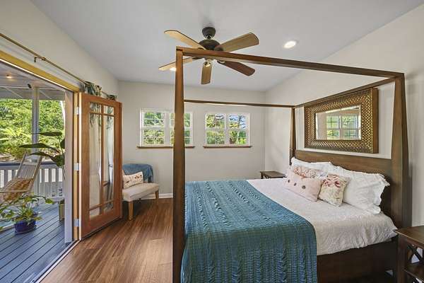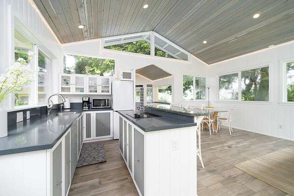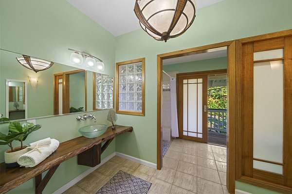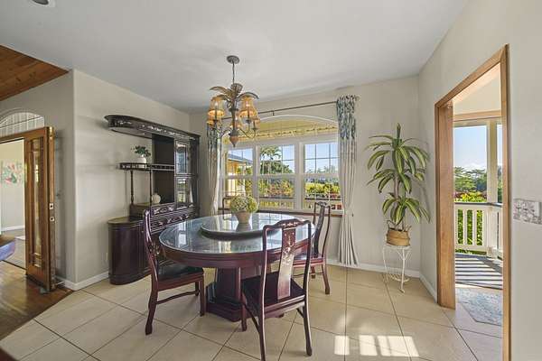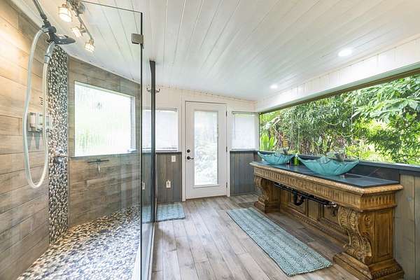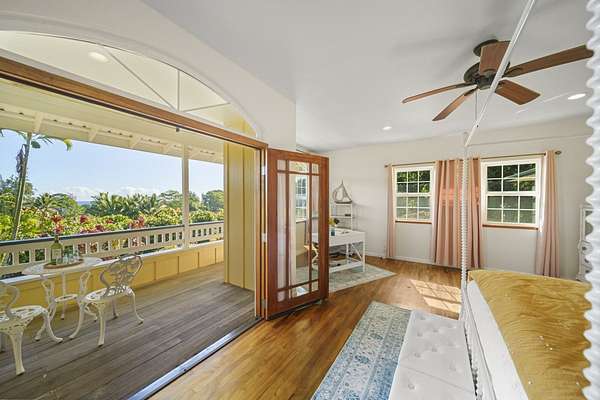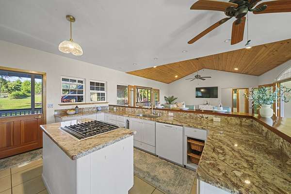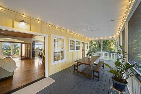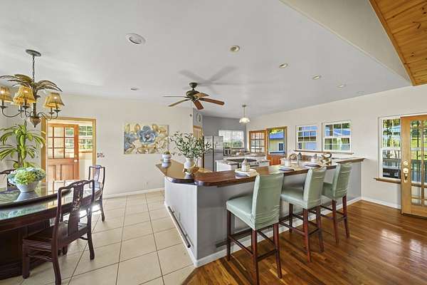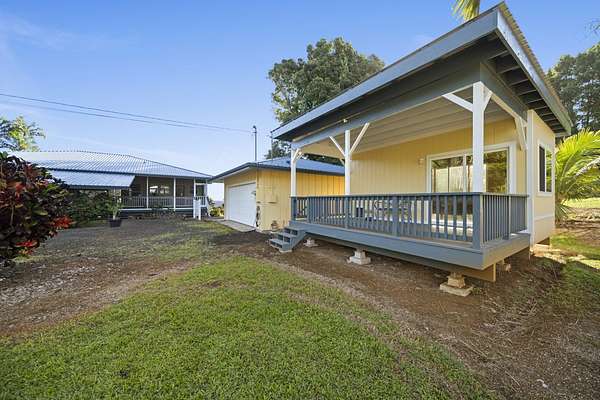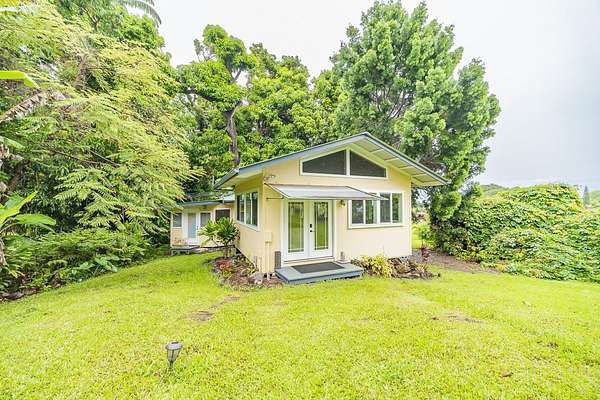 Perched along the stunning Hamakua Coast, in the Pepeekeo Point Subdivision, this majestic property offers a rare opportunity to own an estate-like retreat with ocean views, lush landscaping, & income potential. This 3.54-acre parcel is for those who appreciate privacy, security & enjoy Hawaii's natural beauty. The main residence features an open-concept living area, vaulted ceilings with ceiling fans throughout. Large windows frame the unobstructed ocean views with cool ocean breezes. The spacious kitchen is well-equipped with ample granite counter space, stainless steel appliances, a gas cooktop. A nostalgic dutch door leads to a huge screened lanai offering a cool space for gatherings and dining. Flooring in main residence is monkeypod hardwood in living and primary bedroom spaces with tile in kitchen and baths. The primary suite is a retreat of its own, complete with a private lanai made of teak wood, where you can watch the sunrise over the ocean. The ensuite bathroom features a walk-in shower and raw edge wood vanity. The two additional bedrooms and an additional full bathroom offer flexibility for guests or a home office. Another half-bath is located off kitchen area. Another standout feature is the separate 'ohana unit, previously a hosted Short-Term Vacation Rental. This private space includes high ceilings, ample natural light, and modern amenities, making it ideal for guests, extended family, or rental income. The deluxe bathroom overlooks a seasonal creek, surrounded by mango trees and banana grove making you feel one with nature. Outside, the landscaped grounds are teeming with tropical flowers and a medley of fruit trees including: orange, lemon, soursop, jackfruit, papaya, pineapple, avocado and more. The acreage offers plenty of room for gardening and outdoor activities, along with ocean access. Located in a gated community, this property provides privacy while still being convenient to Hilo's amenities, shopping, and dining.