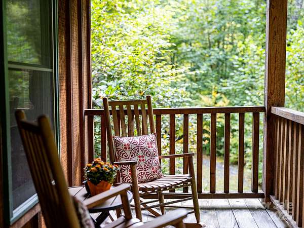 From Weaverville take Hwy 25/70 for 21 miles to the Laurel River Trail parking / turn for Hot Springs will be on your left. Continue straight onto Hwy 208 for another 3.6 miles. Turn left on 208 at stop sign (Belva) then left on Stonefly Rd. You will cross a bridge. You will come to a gate (enter access code). Go thru gate, bear left at next fork, then right on Blue Quill. Right on Caddis Court then first left thru gate. Property starts here. Follow drive to end at cabin. AWD or 4WD recommended or park at the top and walk to the cabin below.