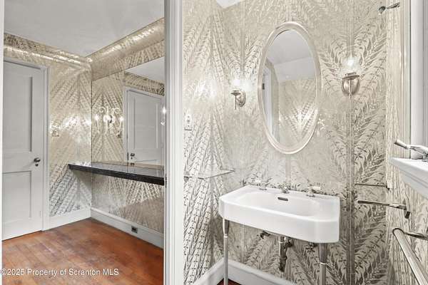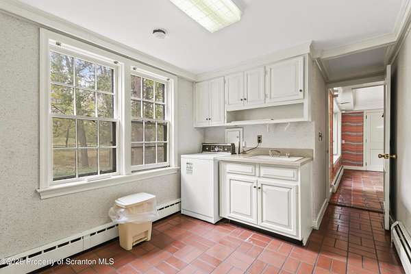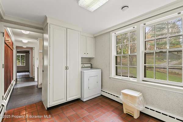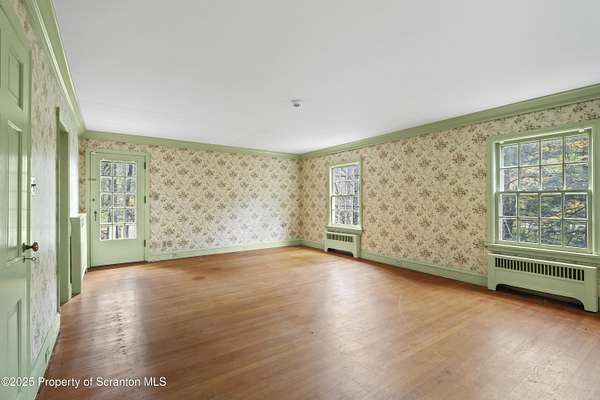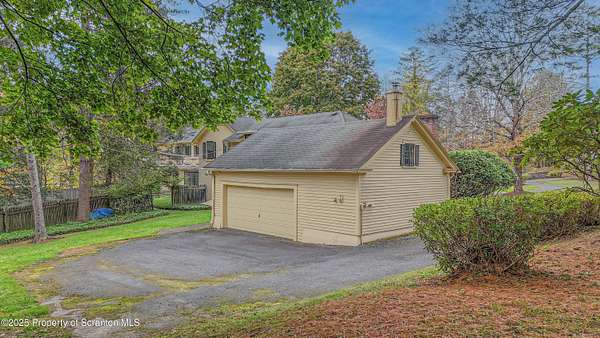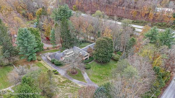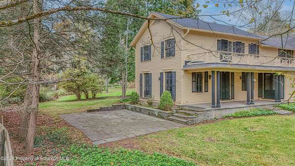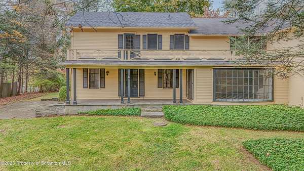 Absolutely stunning and Historic single-family residence nestled in the highly sought-after Abington Heights School District. This expansive home boasts 5 bedrooms and 6 bathrooms across 4,475 square feet of living space, offering ample room for comfortable living and entertaining. Situated on a generous 5-acre lot, the property features a charming main level with a living room, dining room, family room, den, and kitchen, all complemented by a cozy fireplace. The second level includes a master bedroom with an en-suite bathroom, four additional bedrooms, and a full bathroom, while the lower level offers a second family room, an additional bedroom, and a bathroom.Key highlights include hardwood floors throughout, a two-car garage, and a wraparound porch perfect for enjoying the serene surroundings. The home's construction materials of brick, stone, and wood siding add to its timeless appeal, while modern amenities such as a dishwasher, dryer, microwave, range, refrigerator, trash compactor, and washer ensure convenience. Exterior features include a patio, porch and pool enhancing the outdoor living experience. This home combines classic architecture with practical updates, making it a perfect blend of elegance and functionality.