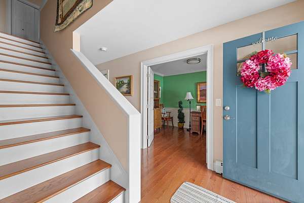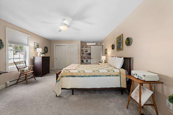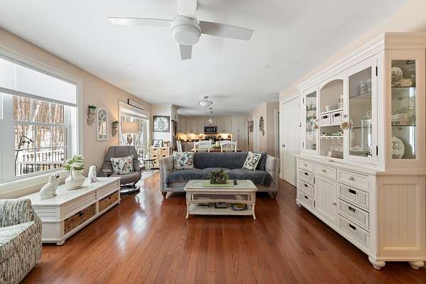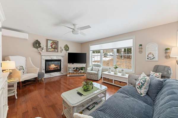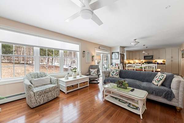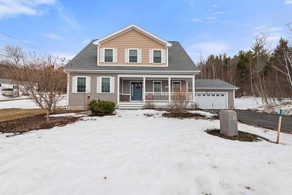 OFFER DEADLINE: TUESDAY, MARCH 17, 2026 AT 8PM. SPRING IS THE SEASON OF NEW BEGINNINGS. Start your new beginning at this meticuliously maintained Contemporary Cape in low-tax Hebron. Set on 2 rolling, well-landscaped acres, this 2018 home feels like new and offers an inviting open floor plan perfect for easy living and entertaining. The gourmet kitchen shines with granite counters, stainless appliances, pantry closet, and a large island with seating, flowing seamlessly to the dining area and living room with cozy gas fireplace overlooking the private backyard. The first-floor primary suite features a custom tile shower. Light & bright office, half bath, and convenient laundry sit just off the kitchen completing the first floor. Upstairs are two spacious bedrooms and a full bath. A full basement offers potential for additional finished space. Efficient propane heat, on-demand hot water, mini-splits for A/C and heat, a standby generator, and gutters with leaf guards add comfort and peace of mind. Step outside to a serene backyard with stone patio, fire pit, perennials, flowering shrubs, and walking trails winding through the property. Spend summer days at the sandy town beach on Newfound Lake or enjoy winter skiing at nearby Tenney Mountain—all while benefiting from Hebron’s famously low property taxes.