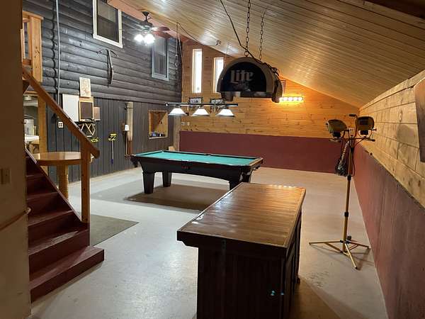 Est $1,410/moNice log sided private cabin in the Heart of Maine 6.5 acs well wooded . apple trees and open fields . 2 car garage for your toys . Near all the trails . Few minutes from Guilford or Dover . Would make great vacation or year round home . Huge family room. Short drive to moosehead lake or Secbec lake paved drive good views