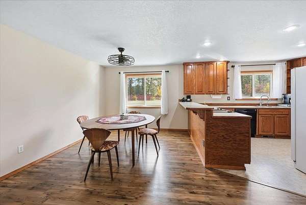 Welcome home to your private 6.5-acre retreat! This sprawling 3,000+ sq. ft. haven features 5 oversized bedrooms and 2 beautifully appointed baths. Vaulted ceilings crown the open-concept living, formal dining, and wraparound kitchen complete with double ovens, cooktop, bar seating, and a premium water filtration system. Gather around the 5-year-old pellet stove as natural light pours in through every window. The primary suite addition impresses with a huge walk-in closet, 4-piece spa bath, and double doors leading to a serene brick patio. Enjoy main-floor laundry, abundant storage, and a mudroom leading to fenced gardens and pastures ready for pets or livestock. A 3-stall barn, oversized 3-car garage with carport, and 72x32 heated shop with roughed-in bath make this a dream for hobbyists. Just minutes from Sherman Farms, the Columbia River, and Kettle Falls, this property perfectly blends country comfort with convenience. Your modern homestead awaits!