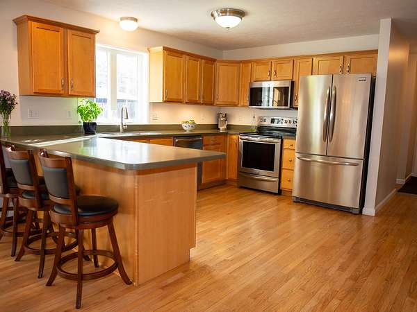 Meticulously maintained 4-bedroom Colonial set on a private 1.79-acre lot in a desirable Dover neighborhood. This home offers the perfect blend of comfort, space, and functionality with an open-concept first floor designed for everyday living and easy entertaining. The kitchen features an eat-in bar and flows seamlessly into the dining area, living room with a fireplace insert, and additional family room—all with hardwood floors throughout. A first-floor powder room and laundry add to the convenience. Upstairs, you’ll find three bedrooms including a spacious primary suite with a private bath, double sinks, and a walk-in closet. The finished third floor offers the fourth bedroom along with a dedicated office space—ideal for today’s work-from-home needs. The clean, unfinished basement provides excellent storage or the opportunity for a home gym. Additional features include a two-car attached garage and generator hookup. Enjoy the outdoor setting with a back deck off the kitchen, patio, fire pit, garden beds, and extra parking suitable for an RV. The lot offers both privacy and usable space, making it easy to enjoy year-round. Conveniently located for commuters with quick access to major routes, just minutes to downtown Dover and approximately 25 minutes to Portsmouth. Showings begin at the Open Houses Friday 4:30–6:00 PM and Saturday 11:00 AM–12:30 PM.