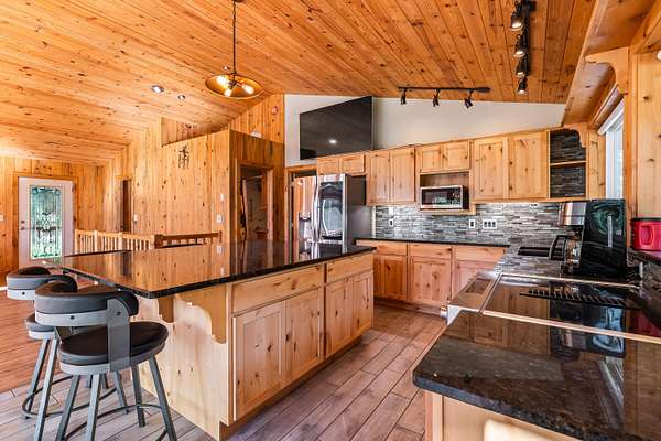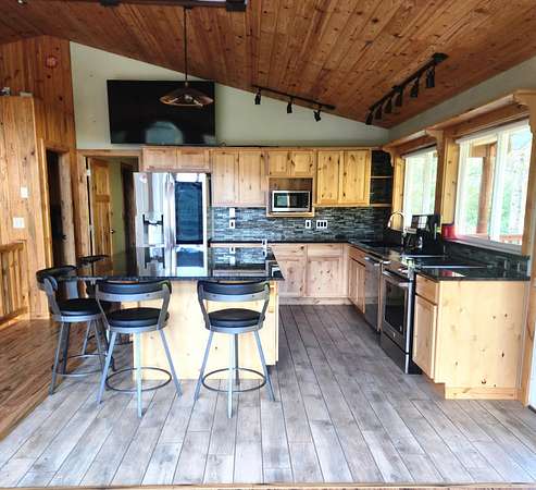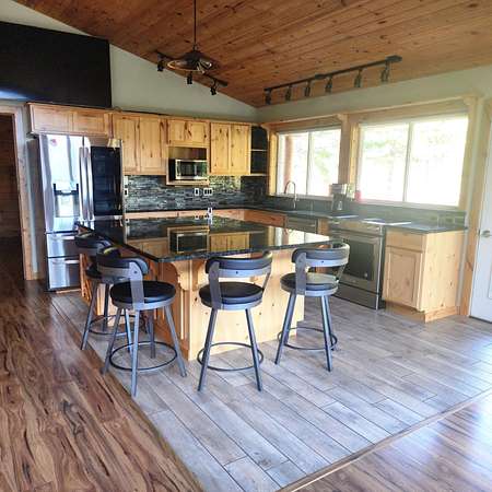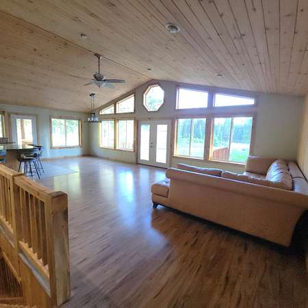 ''Waterfront Oasis'' Listen to the sounds of the Kettle River from this Stunning Custom built home situated on 6.52 acres boarding the Kettle River. Large open floor plan with views from the kitchen, dining and living room. Plenty of windows to bring the beauty of outside inside. Main floor living with radiant heat, laundry and primary bed and bath. A beautifully finished basement includes wet bar, stone floors, a wood stove, bed and bath, lots of windows and an outside entrance. 2 decks for your entertaining enjoyment & oversized 2 car garage. Secondary Shouse for family and friends, that includes a kitchen, bath and huge bonus room with pool table and room for several sleeping areas and includes 2 car garage. In ground sprinkler, huge woodshed with storage, Screened gazebo and shed.
