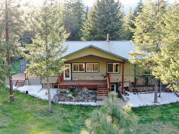 Hwy 395 N from kettle about 35 miles to First Thought Loop, on the right (about 10 miles past Orient)Arrow Sign and orange tape at the road.There is a sign at the main driveway with another orange flag. Use upper driveway ..more orange flags.