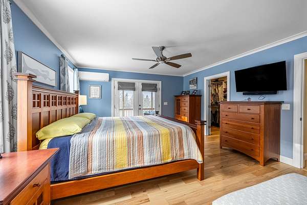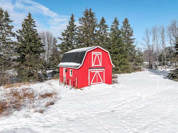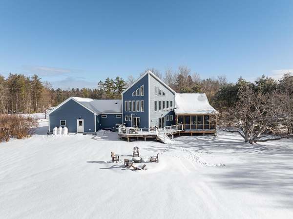 Welcome to this stunning, thoughtfully designed home built in 2022, offering the perfect blend of modern luxury, comfort, and privacy on 3.5 beautifully secluded acres. This spacious 4-bedroom, 3.5-bath residence is ideal for both everyday living and entertaining. The first-floor primary suite is a true retreat, featuring a generous walk-in closet, a luxurious full bath with tiled shower, and access to a screened-in porch complete with a step-down hot tub, perfect for year-round relaxation. The heart of the home is a dramatic great room with cathedral ceilings and a wall of windows that flood the space with natural light while showcasing serene views of the surrounding acreage. The large eat-in kitchen is a chef's dream, boasting a 6-burner gas stove, oversized island, and walk-in pantry seamlessly connecting to both the great room with a cozy gas fireplace and bar area with a beer and wine fridge. A formal dining room offers a more intimate space for gatherings along with a welcoming sitting room and a dedicated office. Upstairs, you'll find three spacious bedrooms and a full guest bathroom, offering comfort and privacy for family or visitors. The finished basement provides the ultimate bonus space offering a large great room with a projection TV, a full bathroom, and plenty of storage. Additional highlights include radiant heat throughout the first floor, a large composite deck for outdoor entertainment, instant hot water, and a heated two-car garage with separate third-car storage. Ideally located near Northern Light EMMC Hospital and close to all local amenities, this home also offers school choice for high school. This property truly has it all with a whole house generator, fruit trees, berry bushes and small barn!