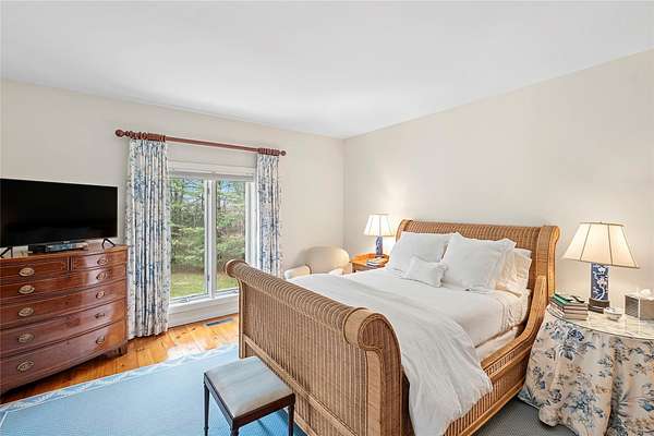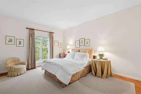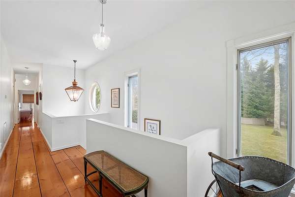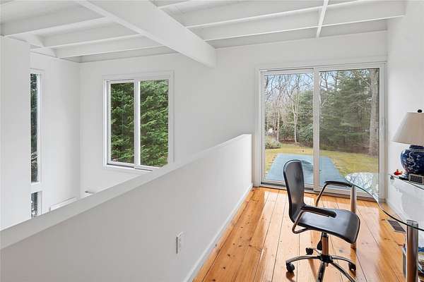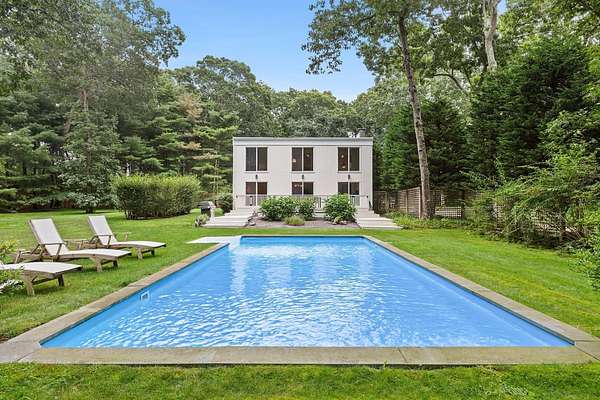 Timeless Design Meets Prime Georgica Location This elegant modern residence, a creation of renowned architect Harry Bates, exudes timeless architectural sophistication. Nestled on 2 sprawling acres in the heart of East Hampton Village, the home offers a harmonious blend of classic charm and contemporary living. Spanning approximately 3,724 square feet, the two-story layout features 5 bedrooms and 4 bathrooms, with seamless flow throughout the main living spaces-including a welcoming family room, a sunlit living room with fireplace, and an open-concept kitchen. Upon entry, a gracious foyer leads into the family room with sliding glass doors that open to the backyard. The kitchen is outfitted with top-tier appliances including a Sub-Zero refrigerator, Viking range, and Bosch dishwasher, plus a generous walk-in pantry for ample storage. The dining area and living room transition effortlessly to an expansive deck with built-in outdoor barbecue through a wall of sliding doors-ideal for indoor-outdoor entertaining. The first floor also features a spacious den that can be converted to a bedroom, a full bath, and a two-car garage. Upstairs, you'll find four large bedrooms, including the primary suite, along with three full bathrooms. The primary suite offers a private office-perfect for working from home-and a luxurious en suite bathroom with dual vanities, a soaking tub, and separate shower. Outside, the meticulously landscaped grounds showcase a heated pool, mature trees, specimen plantings, and a lush lawn. The expansive lot also allows room for a potential tennis court, pickleball court, or guest house. Ideally located south of the highway, the property provides easy access to ocean beaches, the village's shops and restaurants, and embodies the quintessential East Hampton lifestyle with the perfect balance of elegance, privacy, and convenience