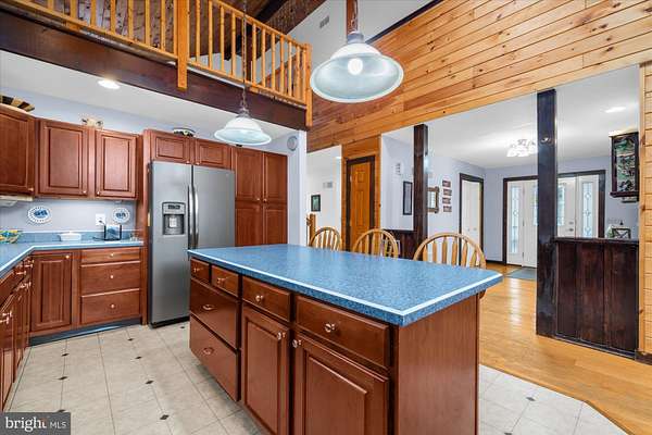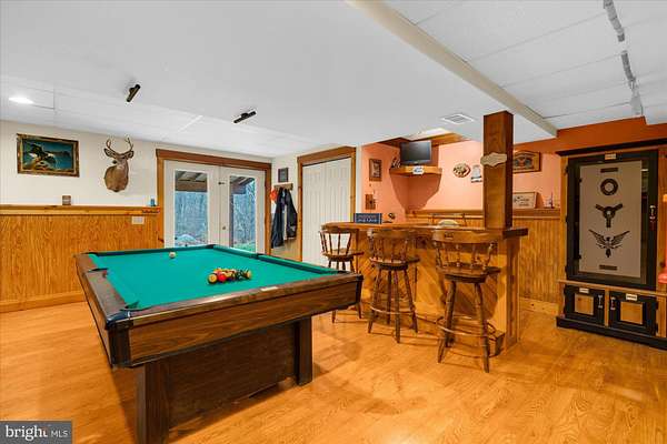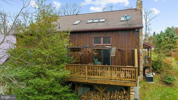 Set on nearly 6 private acres, this contemporary home offers a rare blend of natural beauty, privacy, and modern comfort in a peaceful, tucked-away Berks County community. Surrounded by mature trees, lush landscaping, and vibrant flower beds, the property provides an exceptional retreat enhanced by the soothing sounds of the Little Saucony Creek. Wildlife is plentiful-all of the deer displayed in the basement were harvested on-site during archery season, underscoring the land's remarkable outdoor potential. Inside, the home welcomes you with a vaulted ceiling, skylights, and an open kitchen and dining area, perfect for gatherings. The cozy living room with a wood-burning fireplace adds warmth and charm. The main level also features two bedrooms and a full bath, ideal for flexible living arrangements. The second level includes loft space, two additional bedrooms, including a spacious primary suite with his-and-hers walk-in closets. The primary bedroom connects to the fourth bedroom via a Jack and Jill full bath, featuring a brand-new walk-in shower room and vanity area, combining practicality with a spa-like feel. The finished basement, constructed with superior pre-installed wall panels with Styrofoam and studs, offers a large recreation room and wet bar, laundry area, powder room, lots of storage and utility space, and a heavily used wood stove that serves as a key heating source in colder months. French doors lead directly to the patio and private six acre lot. The home is equipped with a two-zone hydronic heating system and 200-amp electric service, offering efficient and reliable comfort throughout the seasons. A major highlight is the expansive pole building/garage. Decking from the home's main level leads directly to the second story of the pole building, a versatile space that could be easily finished for additional living quarters, a studio, office, or guest suite. **Laundry chute, wired for speakers, central vac, wet bar, creek on property! Relax on the deck or patio, where you can take in the peaceful creek sounds and the natural beauty surrounding the home. Offering nearly 6 acres of privacy, efficient systems, and thoughtfully designed indoor and outdoor living spaces, this property is a standout opportunity in Berks County.