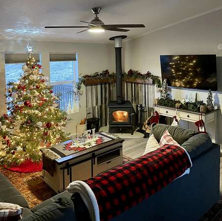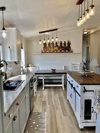 Wide-open, enormous views of Wheeler Peak await you from your living room window and back deck. From your front entrance, the Angel Fire ski slopes greet you every day. This updated and charmingly remodeled home on 2 acres is great for full-timers but also provides easy access for those of you looking for your private mountain get-away that's just minutes from all the fun. Slightly off the beaten path, you'll have the whole world in front of you with expansive views as you snuggle by the wood-burning stove. Foodies will love the kitchen and cozy living room that offers privacy by comfortably separating the primary suite from the two guest bedrooms and bath. The garage is 1 1/2 size so there's room for toys! It may be difficult to pull yourself away from the back deck and mountain majesty, but this home is just minutes from the heart of Angel Fire and all the exciting year-round activities.