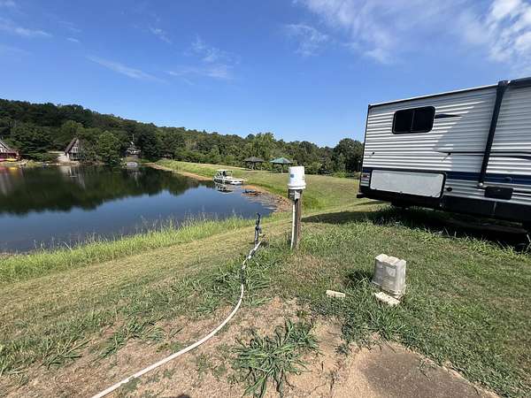 Recreational Property with frontage on Kiwanie Lake, formerly known as Lake Galilee. Potential RV Park/Air BnB cabins or build your dream home it is currently used as a private retreat. The 5.44 acres of land is serviced by Entergy Electric and 2 Highland water meters. There are 15 camper pads (10x20), 3 have 50 AMP service, 7 have 30 AMP service, 3 have septic risers and there is a dump station near the 2022 installed septic system. Two frost free hydrants, set such that they can serve multiple pads, 3 Pavilions and a pontoon boat utilized as a floating dock. Park area also has 2 fenced tennis courts and a 20x40 in ground pool in need of some maintenance to be operational. This property is near but not in Cherokee Village, it has a Hardy AR address but is not in the city limits.