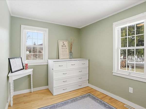 Spacious Colonial farmhouse set on just over 2 acres with sweeping pastoral views, abundant wildlife, and unforgettable sunsets. A welcoming oversized mudroom with new white oak hardwood floors sets the tone for this thoughtfully updated home, designed for both everyday comfort and effortless entertaining. The main level offers exceptional flexibility with two spacious bedrooms, a full bath, a sun-filled dining room perfect for hosting gatherings, and an open-concept eat-in kitchen renovated in 2022, featuring a large breakfast bar, gas range, and two pantries. Also on this level are a cozy reading room and a spacious family room that opens to an expansive low-maintenance deck overlooking the private backyard - ideal for summer barbecues, relaxing evenings, and taking in the surrounding natural beauty. Upstairs, the second-floor layout shines with dedicated office and living space connected by a shared bath. The generous primary suite features two large walk-in closets. Additional living space continues in the finished basement, ideal for a game room, home theater, or workout space. Extensive upgrades include hardwood flooring and refinishing, a new furnace, on-demand hot water, energy-efficient heat pumps for heating and cooling, fiber optic internet, electrical upgrades, and multiple bathroom refreshes. Outdoor features include stone landscaping and a wired 12 x 24 shed offering excellent storage or workshop potential. Additional highlights include a heated garage, abundant closet space, low-maintenance vinyl siding, southern exposure for year-round natural light, and easy access to outdoor recreation, town amenities, Burlington, and Lake Champlain. A rare opportunity to enjoy space, privacy, and modern updates in a highly convenient location.