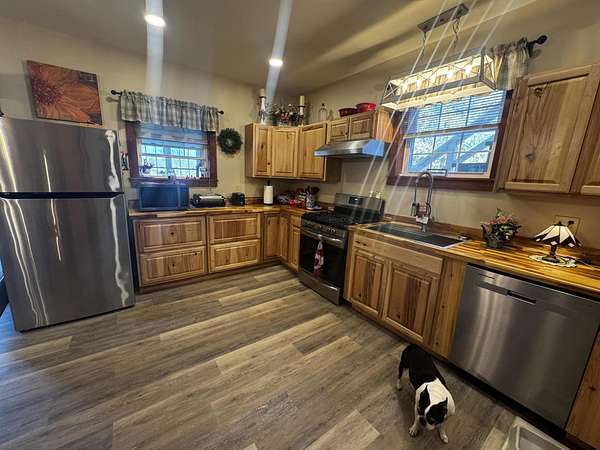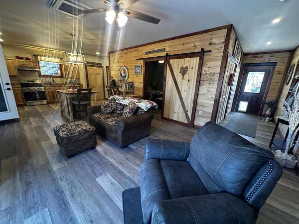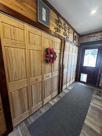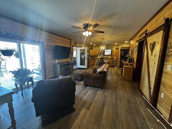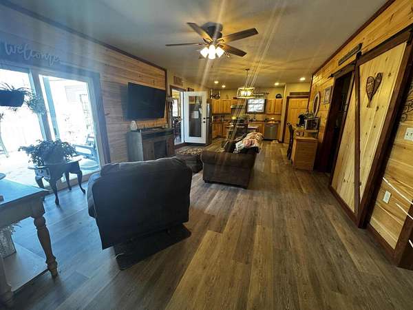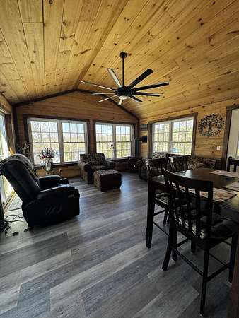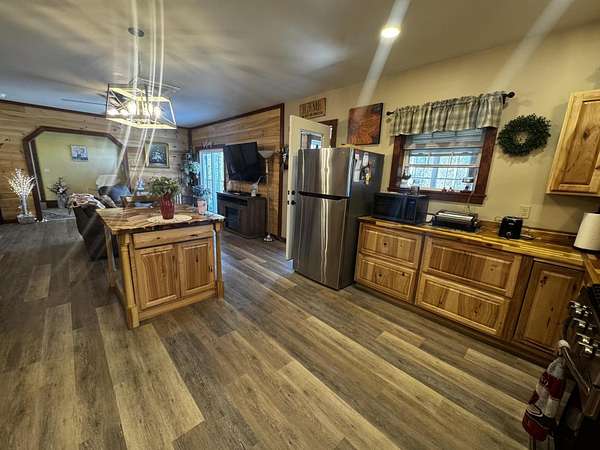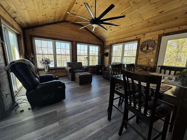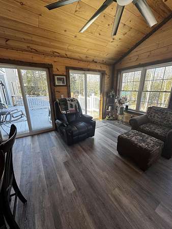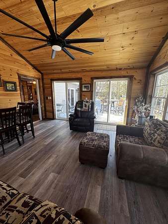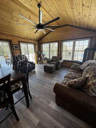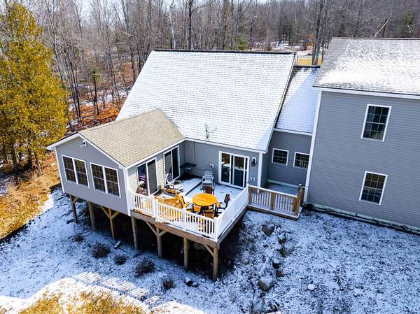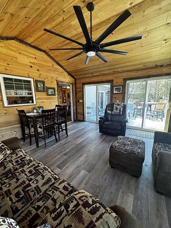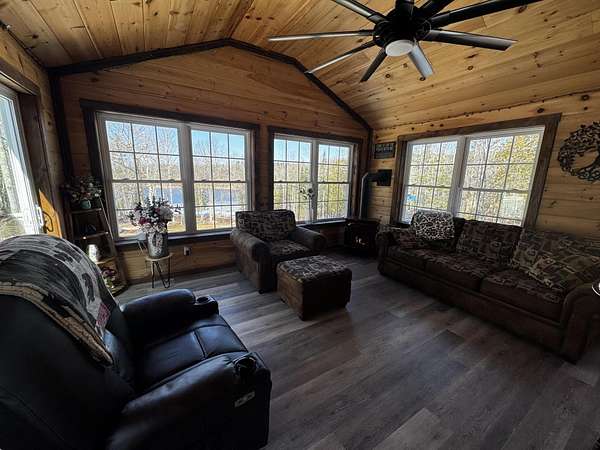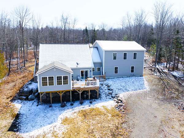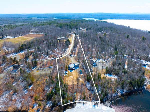 Discover this stunning cape-style home, tucked away in a peaceful lakeside neighborhood, set on 3.5 acres of private land & boasting 200' of owned waterfront on Sebasticook Lake! Enjoy breathtaking sunsets, boating, fishing, swimming, & relaxing at the water's edge. The aluminum dock features a seating area, perfect for lounging or enjoying your morning coffee. Experience the serenity that lakeside living offers, surrounded by abundant nature & wildlife, including deer, & watch the loons glide by across the lake. Inside, the open-concept kitchen, living, & dining area features pine cabinets, butcher block countertops, stainless appliances, a handcrafted island, & a coffee bar. The living space showcases artisan-crafted sliding barn doors & beautiful wood accents, adding warmth & character throughout. Luxury vinyl plank flooring flows across the main level, creating a cohesive & inviting feel. The first floor primary bedroom provides comfort & convenience, while above the attached 30 x 32 garage, a finished bonus room & second bedroom offer flexible living space--perfect for guests, a home office, or a private retreat. The four-season sunroom features a cozy propane fireplace & cathedral ceiling, opening directly to an expansive deck with lake views for seamless indoor-outdoor living. A well-designed mudroom serves as a practical transition space from the garage, keeping your gear organized while connecting smoothly to the home. The laundry area off the kitchen adds convenience. The two car attached garage offers ample storage, & the home is equipped with two heat pumps & a new Generac on-demand generator, ensuring comfort & peace of mind year-round. Adding to the charm, a sweet bunkhouse provides the perfect space for kids, guests, or a quiet retreat. This home perfectly balances peaceful living with easy access to area amenities. With spacious interiors, modern finishes, & stunning lakefront views, this property truly embodies the best of Maine living!