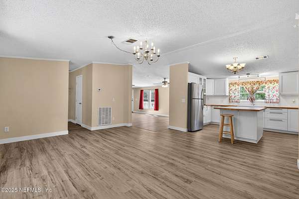 ACRAGENEW WELLUPDATEDRV HOOKUP**WASHER/DRYER included Welcome to this updated home, where privacy meets endless possibilities on 6.75 ACRES. This 4 bed/2 bath home features a versatile SPLIT BEDROOM FLOOR PLAN and a BONUS SPACE, making it perfect for families of any size. The interior shines with NEW FLOORS, UPDATED BATHROOMS, and a REMODELED KITCHEN that comes with all appliances included. This home also has fiber internet with speeds up to 2000/2000MBPS. Outside, the property is a dream for hobbyists and nature lovers. It includes a multi-purpose WORKSHOP with 220V POWER, heat, AC, a deep sink, and running water. For onsite weatherproof storage, you'll find a CONNEX shipping container, a lawn mower shed, and a 30AMP RV HOOKUP. Practical updates like a NEW 4'' WELL with an 'air over water' iron filter, NEW SKIRTING, and a WATER SOFTENER, NO FLOOD ZONE status. You'll love the PEACE AND PRIVACY from being surrounded by trees. to the Suwannee River boat ramp, 20 minutes to Hart Springs, and 30 minutes to the Gulf Coast. Don't miss out!