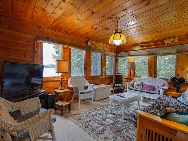 Set against the picturesque backdrop of Upper Saranac Lake, this property offers a truly enchanting experience with its breathtaking views of the lake and mountains nestled within a secluded cove. Spanning an expansive 3 acres, this estate boasts an impressive +/- 200 feet of pristine shoreline along Upper Saranac Lake, providing unparalleled access to the water's edge and a wealth of waterfront activities. The main residence, a charming year-round home, features three bedrooms and three baths and offers the perfect blend of rustic charm and modern comfort. A central focal point of the living space is a cozy fireplace, creating a warm and inviting atmosphere, perfect for relaxing evenings with family and friends. While the main residence showcases the timeless appeal of Adirondack living, it also presents an opportunity for upgrades to tailor the space to your preferences. Beyond the comfortable dwelling, the property's wooded acreage provides ample space for outdoor activities, whether it's picnicking by the shoreline, exploring nature trails, or simply enjoying the tranquility of the surrounding landscape. With its unique combination of natural beauty, extensive shoreline, and charming accommodations, this property on Upper Saranac Lake offers an idyllic retreat for those seeking a quintessential Adirondack experience.