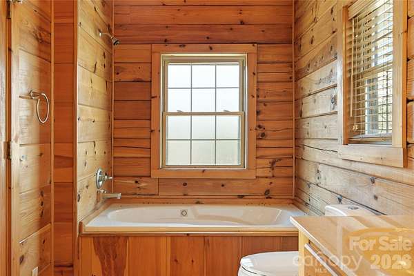 Been looking for a classic mountain log cabin without the maintenance? Wanting a getaway that's still convenient to town, a gorgeous lake and two of NC's best cities? Well, you found it. This one-owner, well-maintained rustic charmer has so much to love: a brand new roof, 3 large bedrooms each with their own attached bath, a stunning floor-to-ceiling gas fireplace, decks all around, 4-inch oak floors, custom molding and trim throughout, stainless steel appliances, Corian countertops and a huge detached garage complete with its own finished (no HVAC currently) space above the parking area. Use it as a workout room, abundant storage, art studio, additional guest quarters - so many possibilities. Need a primary home? The convenience to I-40, Lake James and its state park, the town of Marion and the amazing cities of Asheville (45 min) and Charlotte (90 minutes) make that totally feasible. Need a vacation home that helps pay for itself? She can do that too! Short-term rentals (AirBNB & VRBO) are allowed! Tucked just inside a lovely small gated community, enjoy the benefits of security, a community pool and friendly neighbors all with low HOA fees. A solid, warm and inviting property, she is move-in ready. Bring your own warmth and love - and let's make her a home again.