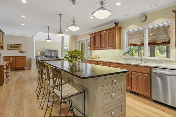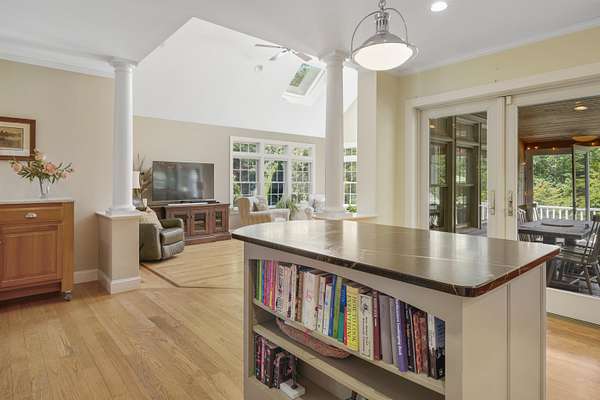 Discover exceptional living at 28 Partridge Hill Road in desirable Newfields, NH. Set on 3.7 private acres, this custom-built home offers an expansive and flexible floor plan designed for both everyday comfort and memorable entertaining. A heated 22x40 Gunite saltwater pool, bluestone patio, garden beds, and screened porch create the ultimate backyard retreat. The open-concept chef’s kitchen is the heart of the home, featuring two soapstone islands, elegant Danby marble countertops, a professional gas range, and a spacious walk-in pantry. The kitchen flows seamlessly into a sunken family room with soaring ceilings and a gas fireplace and opens into a large sunroom. Graceful arched entries lead to the formal dining room, while French doors open to a sun-filled living room. A separate staircase provides access to a private office or media room above the garage, and an additional first-floor room offers flexibility for a second office or playroom. Upstairs, the luxurious primary suite includes a walk-in closet, dual vanities, whirlpool tub, and tiled shower. Two additional bedrooms—one with a loft—share the second floor along with a large laundry room, full bath, and access to the bonus room over the garage. Hardwood stairs lead to the third floor, where two more bedrooms, a common area, and a ¾ bath provide even more versatile living space. The finished walk-out lower level adds approximately 1,200 square feet with a ¾ bath, workshop, and storage area large enough to accommodate a car with exterior door. Quality craftsmanship inside and out makes this home truly exceptional. Located in the charming community of Newfields, offering the very best of Seacoast living. SAU #16 Exeter School District.