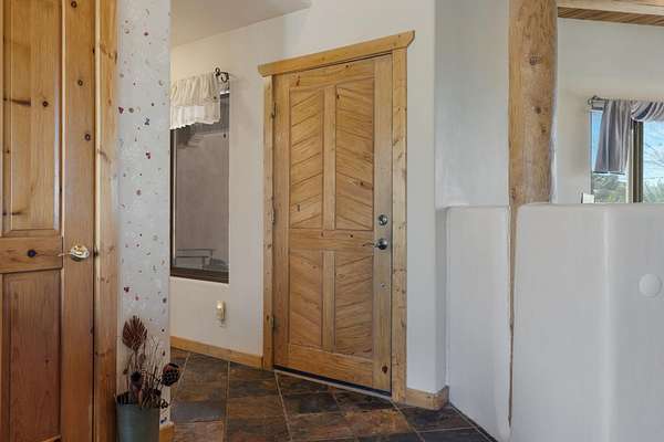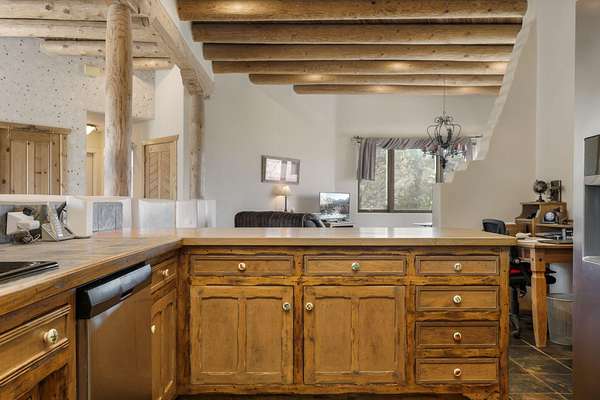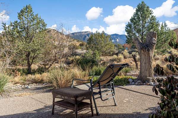 Nestled in the heart of Placitas, this beautifully maintained custom home was built by renowned local builder Tom Ashe. A distinctive Sandia Mountain-themed front gate welcomes you down the expertly graded and graveled driveway to this highly versatile homestead. The detached garage easily accommodates oversized RVs, with power connections both inside and out. Classic Placitas charm fills the interior: pristine plaster walls, authentic viga ceilings, and warm, handcrafted cabinetry throughout. Unwind in the primary bathroom's soaking tub with stunning mountain views, or enjoy sunrise coffee on the peaceful back porch. Ideal for horses, gardening, or any recreational vision. Schedule your private showing today!