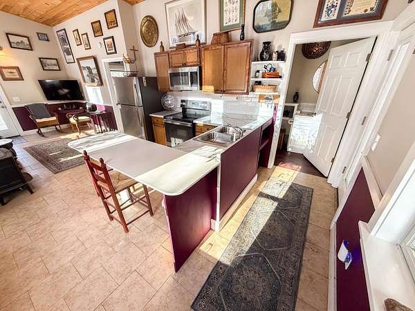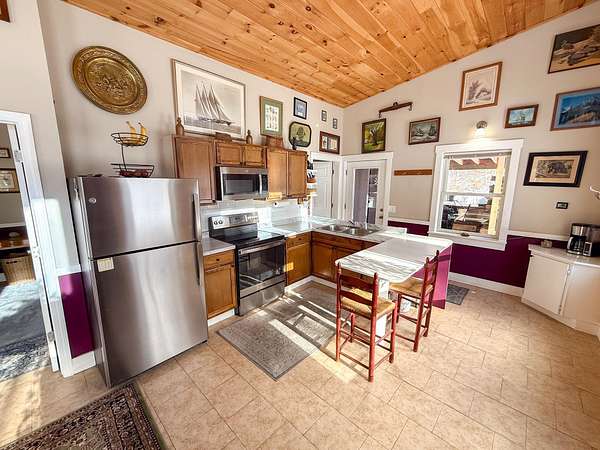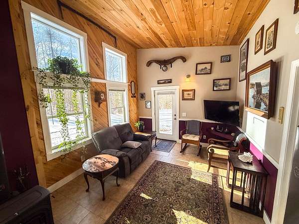 Set on 12 acres with mountain views in Orford, NH, this thoughtfully designed contemporary home offers peaceful one-level living with room to grow. Built in 2023, the open floor plan is filled with natural light and offers an easy, comfortable layout for everyday living. The home is currently configured as a one-bedroom and includes two bathrooms, with a half bath near the kitchen and a three-quarter bath off the primary bedroom with conveniently located laundry. The living area features a wood stove that efficiently heats the home, with electric heat as a supplemental option. For buyers preferring propane heat, the sellers are willing to install a direct-vent Rinnai heater prior to closing. The property is set up with a state-approved three-bedroom septic system, providing excellent flexibility to expand and customize over time. An attached one-car carport provides covered parking and additional storage. Outside, enjoy privacy, established walking trails, great sun exposure, and space for gardening, recreation, or relaxing and taking in the setting. Conveniently located just 10 minutes from Lyme, 25 minutes from Hanover and Dartmouth College, and 35 minutes from Dartmouth Health, this property offers a rare combination of land, flexibility, and an easy Upper Valley commute.