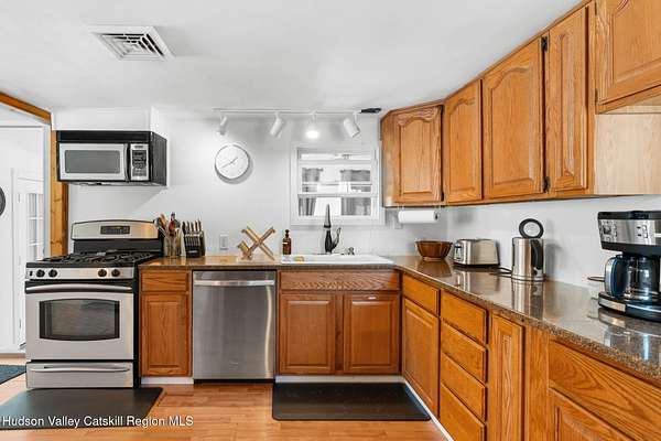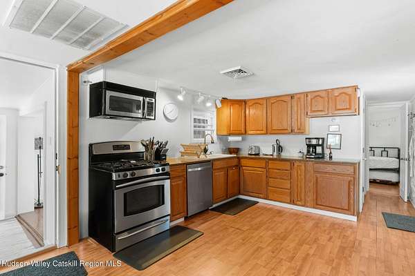 Private retreat at the end of a quiet road, offering peace and tranquility in a stunning natural setting. With 3 bedrooms, 2 full baths, this home is the perfect getaway for those seeking relaxation and connection with nature. Step into the spacious living room, and you'll be greeted by abundant natural light and a cozy atmosphere. The private deck off the living room provides the perfect spot to enjoy your morning coffee or unwind with a book while immersing yourself in the beauty of the surrounding nature. From lush greenery to the soothing sounds of wildlife, this location offers a true escape from the hustle and bustle of city life. 5-minute walk to the Esopus Creek, 9-minute drive to Belleayre Lake Beach, 12 minutes to Belleayre Mountain Ski Center, and 5 minutes to the Phoenicia Diner!