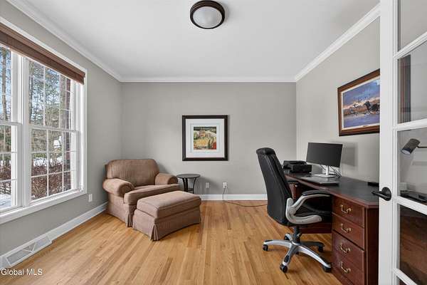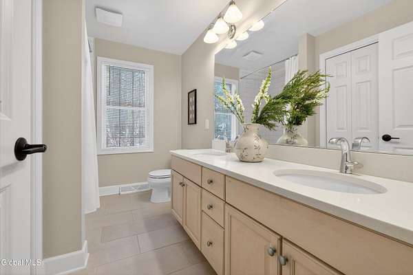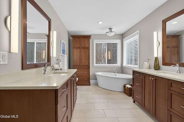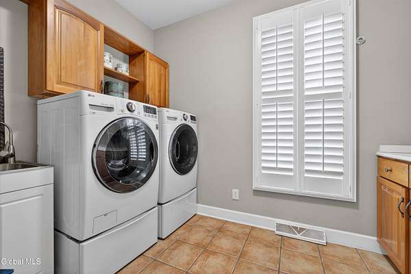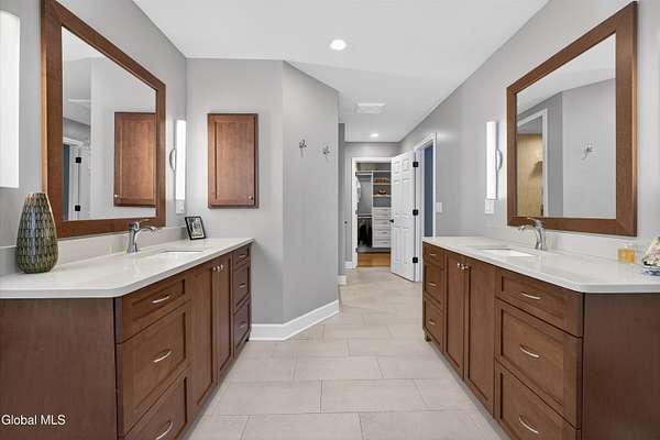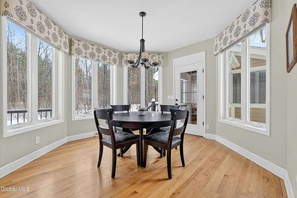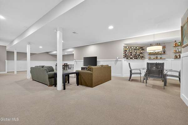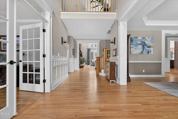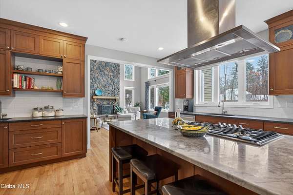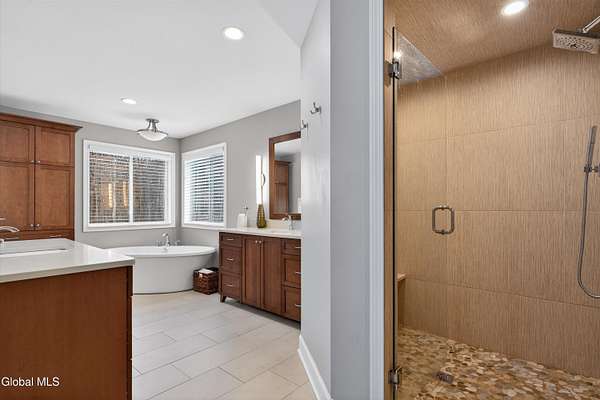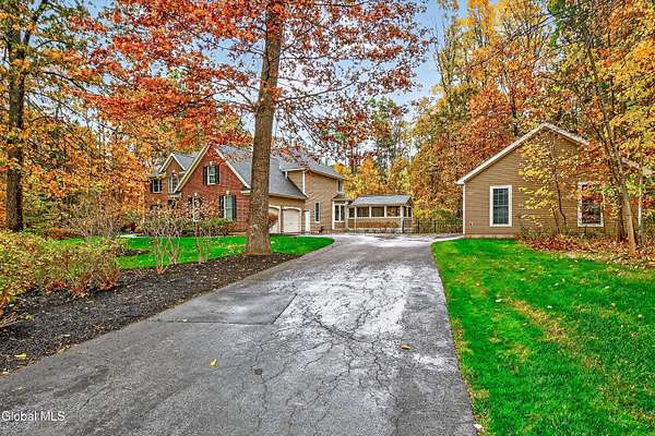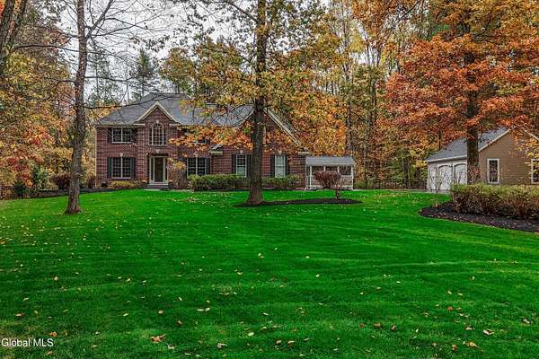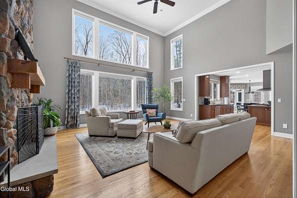 Located in Meadowbrook, one of Saratoga Springs' premier luxury communities, this exceptional 5-bedroom, 5.5-bath home is situated on 2+ acres, is rich in upgrades and thoughtfully designed with advanced smart technology throughout. Smart outlets, blinds, lighting, and sensor-based controls enhance everyday living with ease and efficiency. Just minutes from the Track and Downtown Saratoga, you get the best of both worlds, nature & convenient location! The heart of the home is the show-stopping kitchen, featuring Bosch appliances, an oversized island, custom Brookhaven cabinetry, a walk-in pantry, and a dedicated baking center with a pop-up mixer stand. Open to the grand living room, the space is filled with natural light from floor-to-ceiling windows, complemented by programmed smart shades that follow the path of the sun and a striking stone fireplace. The primary suite is a true retreat with a spa-like bath offering a stone-floor shower, deep soaking tub, dual vanities, including a smart drawer with built-in outlets, and a custom walk-in closet. Additional unfinished bonus room w/ window off walk-in closet offers loads of options. Additional bedrooms and baths are generously sized, bright, and finished with fresh, modern updates. A full finished basement adds exceptional versatility, offering expansive space ideal for entertaining, a recreation area, or the creation of a private theater room, complete with Bose surround sound speakers. Additional walk up entrance from garage offers great convenience for guests and for storage. Outdoor living is equally impressive with a screened-in porch featuring sunset mountain views and seasonal window covers, a newly expanded paver patio, and two beautifully landscaped, fenced acres. Native trees, shrubs, and wildflowers are thoughtfully planned to bloom throughout the seasons and are maintained by smart sprinkler systems, creating a serene and private setting to enjoy year-round.