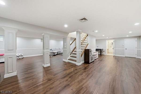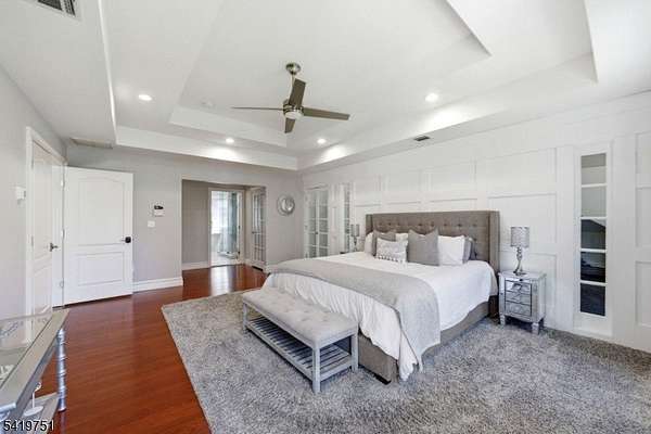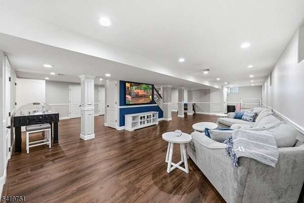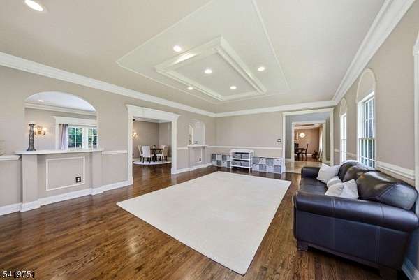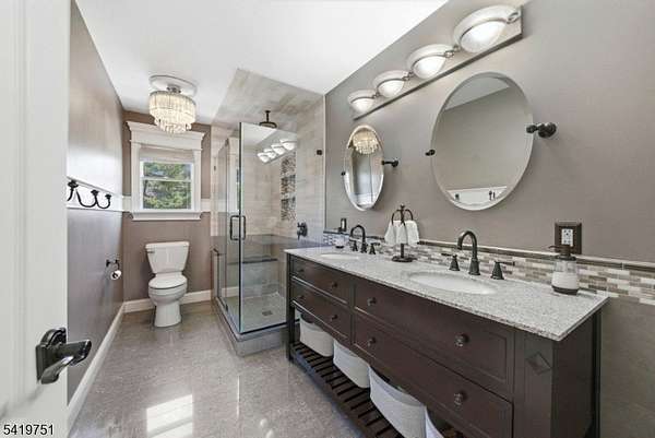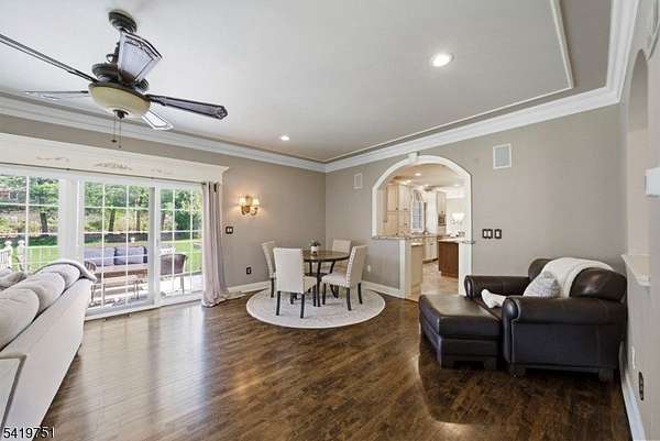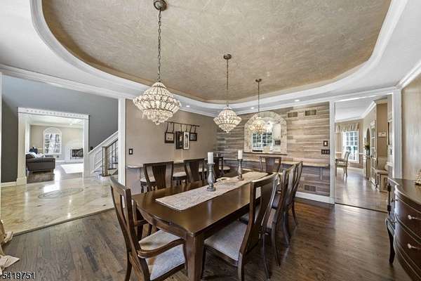 Set in Woodshire Estates, one of Montville's most desirable sections, this impressive 5 bedroom, 3.5 bath colonial offers space, design, and a layout that works. A grand 2 story entry welcomes you in and sets the tone for the scale and light found throughout the home. The bright kitchen features a commercial-grade 6 burner range, pot filler, warming drawer, and high end finishes. The dining room makes a statement with a custom lighted drop ceiling, while hardwood floors and recessed lighting flow throughout the home. A large formal living room with gas fireplace adds to the generous main level layout. Added convenience of a first floor bedroom off the kitchen, which can be used for an office, or enjoy the added storage, perfect for organization. Upstairs, the primary suite offers a rare setup with a huge walk-in closet, private gym, and a spacious laundry room, all within the suite, along with a stunning bath. All bathrooms throughout the home are finished with gorgeous design. Custom closets are featured in all second floor bedrooms. The finished basement with a full bath adds flexible space for recreation, work, or guests. Outside, the large backyard is open, spacious, and ideal for both relaxing and entertaining. With five bedrooms, beautiful finishes throughout, and a long list of features, this is a home that needs to be seen in person to fully appreciate. EV charging station, generator, upgraded 200 amp electric, indoor/outdoor speakers, & Verizon Fios available.