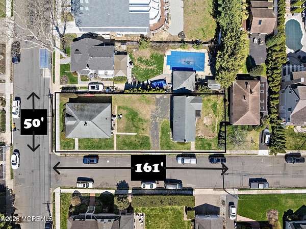For those looking to build their dream home in Manasquan's most coveted spot, your ship has just come in. Frustrated with the 100' deep and 140' deep lot sizes? Here is a rare OVERSIZED 50' x 161' LOT in that prime location between Downtown Manasquan and the Beach....where you walk to restaurants, shops, the parks, the ocean, the marina, the lake, the schools, train station: everything you need for the ultimate small beach town lifestyle literally surrounds you. This 8,000+ property is in the R-2 zone which means it can accommodate a 6,000 sq. ft. house if desired! Or design something smaller and have an even more incredibly unique backyard space! Use or rent out the existing 2BR/1BA bungalow and 2BR/1.5BA garage apartment while you design your dream home!