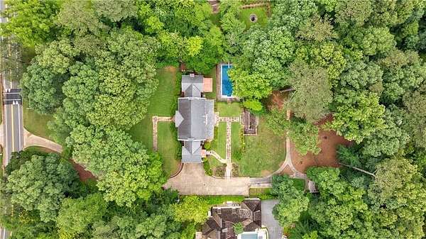 Truly a special opportunity to reimagine a classic 1930s residence, originally designed by renowned architects Frazier and Bodin, on one of Buckhead's most cherished streets-Blackland Road. Nestled on approximately 2.2 acres in the heart of Tuxedo Park, this well-preserved home sits gracefully on a rolling front lawn, offering timeless curb appeal, a pool, and a spacious grassy backyard. A grand foyer welcomes you inside, leading to generous living and entertaining spaces accented by high ceilings and elegant crown molding. The main level features a guest bedroom and full bath, perfect for hosting visitors. Upstairs, an intricate staircase leads to five bedrooms and four and a half baths, including an expansive primary wing with dual bathrooms and a serene sitting area. With endless potential for a transformative renovation, this home is a rare find on an exceptional lot. A must-see in Tuxedo Park.