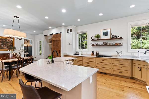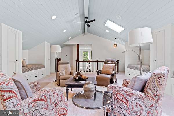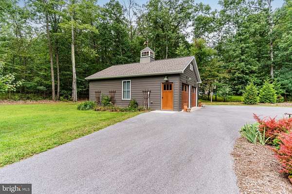 VERY unique "diamond in the rough" -designed by a discerning woman who knew what she wanted in her customized dream home, daily overseeing the construction with attention to every detail. Meticulously maintained since completed in 2019. Located at the top edge of camp/conference, it is 14 miles from Gettysburg and 6 miles to I-81 Scotland exit 20. It offers a safe and serene peacefulness that is hard to find, yet not too far away. Study the photos for this open floor plan mini "resort" for just yourself or a gang of young-at -heart, close friends or family to join you on the week-ends! The placement of the house on 1.6 acres allows for natural light to flood the inside while viewing trees from every oversized, casement windows(w/ Levelor blinds) .10' ceilings painted pale blue (many recessed lights) resembles the sky somewhat, creating a beautiful "I just want to stay here forever" feeling! All custom cabinetry in kitchen, three bathrooms and upper berths made by local cabinet maker Daniel Benedict. Reclaimed wood barn door slides over the pantry/broom closet. Two large windowed entry doors flank the front and the back of the house, allowing more light with the honey colored hickory flooring through out main floor. The main primary bedroom ensuite has a pickled pine wood ceiling, two barn doored closets on either side leads into large, tiled shower (NO glass doors to clean!), stack washer/dryer . Follow me up the gorgeous walnut stairs to be very surprised- an AMAZING BIG "Bunk Room" extraordinaire! 6 beds each having a closet , drawers, light & niche to charge your cell. Two skylights with recessed lights on vaulted pale blue wood ceiling add to the ambiance of this cozy carpeted luxurious hide out! One of the full baths has a stack washer/dryer for guests. The back deck is adorned by beautiful copper overhang. Gas firepit is not too far, nor is the hammock. 6" crawl space accessed by Bilco doors houses the electric box, tankless water heater , reverse osmosis water treatment system and much more storage. Circular driveway can accommodate many guests. Don't miss the copper peacock perched atop the glass cupola on the oversized two car garage. Well insulated, finished dry walls could house a ping pong table or lots of outdoor equipment. Pull down stairs to storage items on fully floored "attic". Every detail-including copper caps on cedar shutters- has been included; Enjoy AT trails, Caledonia State Park, 2 Penn National golf courses, Long Pine Dam reservoir, Totem Pole Playhouse, Gettysburg, Michaux XC skiing trails in close proximity- no city traffic to fight. Seller sadly relocating only due to family circumstances , making it difficult to leave her forever home in a sweet sequestered spot.