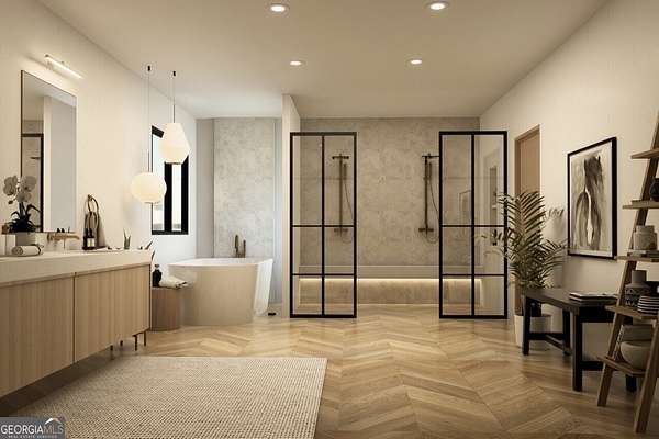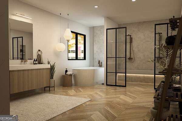 - Double Vanity, High Ceilings, Master On Main Level, Separate Shower, Soaking Tub, Walk-In Closet(s), Wet Bar