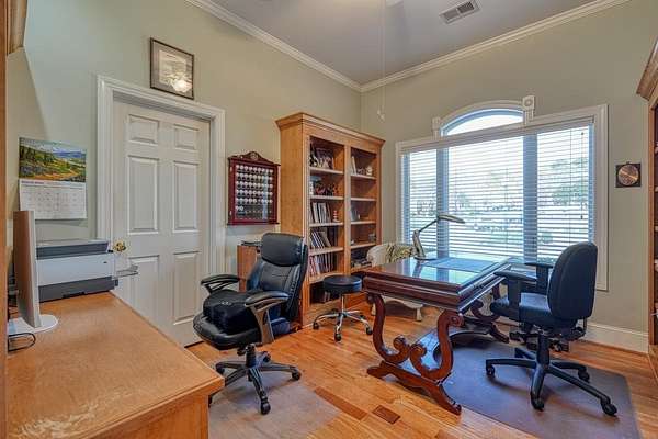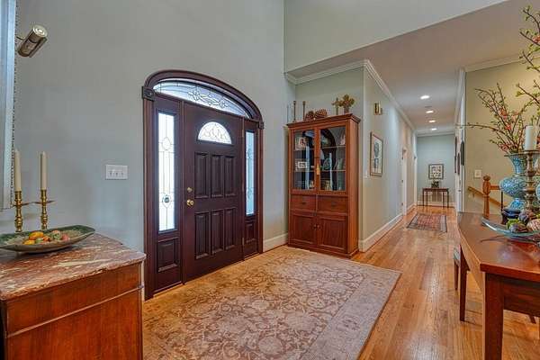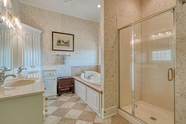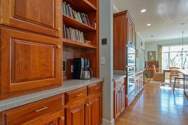 - Bookcases, Ceiling Fan, Ceilings-Smooth, Ceilings-Some 9 FT +, Countertops-Solid Surface, Fireplace, Garden Tub, Gas Logs, Walk-In Pantry
