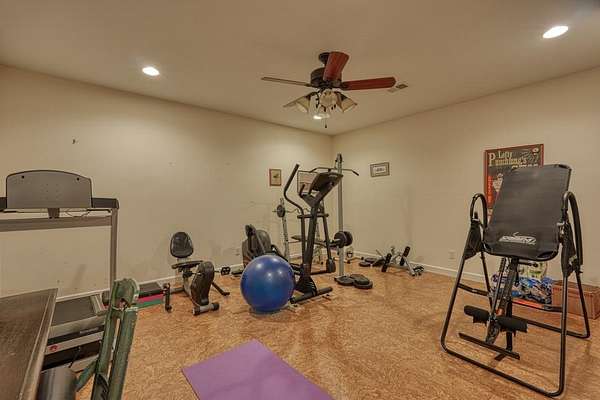 - Basement, Bathroom x 4, Bedroom x 3, Bonus Room, Dining Room, Exercise Room, Kitchen, Living Room, Master Bedroom, Office, Workshop