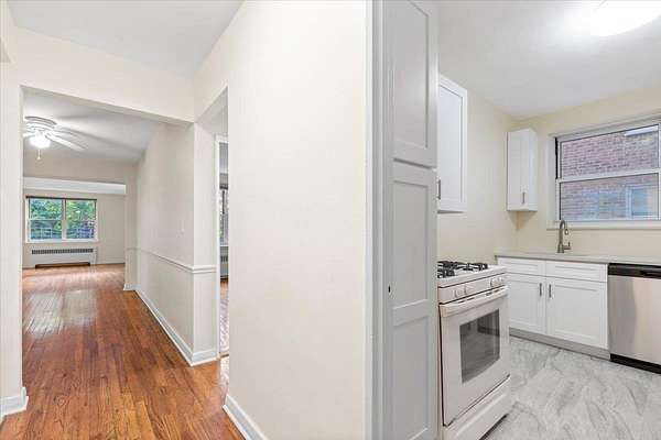 Welcome to 280 Collins Avenue #6J--an expansive 2-bedroom, 1.5-bathroom co-op offering 1,200 sq ft of beautifully maintained living space. This unit features a renovated kitchen and updated bathrooms, complemented by original hardwood floors throughout. Enjoy the convenience of a deeded garage parking spot and a unique staircase providing direct access to the Fleetwood Metro-North Station, making your commute to Grand Central Station approximately 30 minutes. Schedule your private showing today and experience the perfect blend of suburban tranquility and urban convenience!