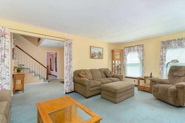 Back on Market due to buyers not able to satisfy their home sale contingency This Spacious and well loved 4 bedroom home is located on a picturesque 8 acre lot, making it an excellent opportunity for those seeking a country lifestyle. Beautiful grounds featuring mature perennials and established trees offering privacy as well as visual appeal. The front porch provides a pleasant space for morning coffee or evening relaxation. Features include a great sized kitchen, w/casual eating area, separate living and family rooms for versatility, designated DR for entertaining and a convenient 1/2 bath. The bonus room, adjacent to the kitchen, offers flexibility and could be utilized as a mudroom, sunroom,etc. Second flr. offers 4 spacious bedrooms w/closets and 2 more full baths! The oversized garage is perfect for the upcoming winter months and even has another storage area! Many quality updates, including NEW Roth oil tank, water pump, vinyl replacement windows and CENTRAL A/C!