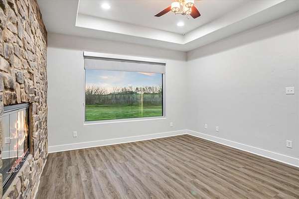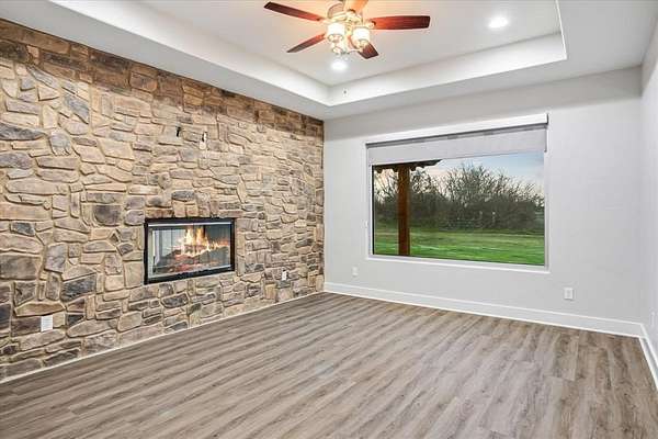 Set atop more than 4 acres of picturesque countryside, this exceptional custom rock estate offers a rare blend of privacy, craftsmanship, and elevated living. Designed to showcase breathtaking west-facing sunset views, expansive windows frame the surrounding landscape while filling the home with natural light. The interior is both refined and inviting, highlighted by striking stone fireplaces in the main living area and the primary suite--creating a seamless balance of luxury and warmth. Built with commercial-grade materials and meticulous attention to detail, the home reflects enduring quality and thoughtful design at every turn. A generously sized bonus room provides versatility for a media lounge, private gym, or creative studio, easily adapting to your lifestyle. Outdoors, the expansive acreage offers a tranquil retreat with endless opportunities for curated outdoor living, entertaining, or simply enjoying the serenity of wide-open space.