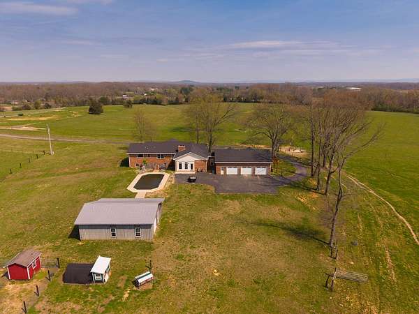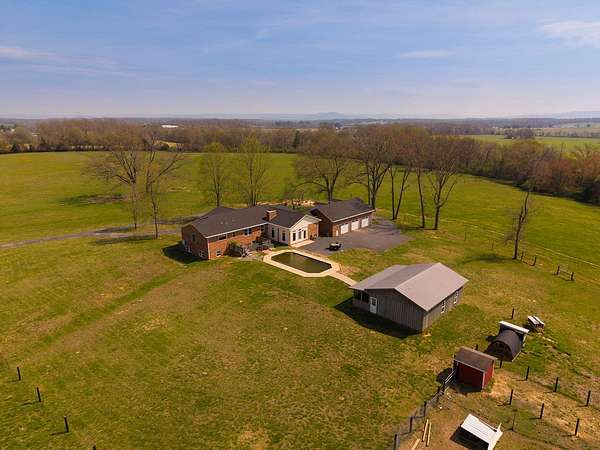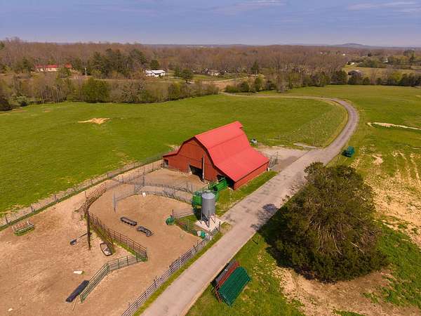 At the heart of the property sits an expansive all-brick ranch home custom designed for comfort and low-maintenance living. Classic architecture design with a symmetrical facade featuring a grand central porch with stately columns. Spacious Interior with a sprawling layout offering multiple wings, ideal for family living or a home office. A long, winding asphalt driveway leads to a circular turnaround, providing ample parking for guests and events. The property is a true outdoor haven with infrastructure already in place for various uses. Relax by the in-ground swimming pool, complete with a sprawling patio surround—perfect for summer entertaining. Includes a large detached outbuilding with a durable metal roof, ideal for equipment storage, a workshop, or a pool house. A classic red barn sits at the perimeter, adding character and functional space for livestock or tack. 21.424 acres of primarily level to rolling green pasture, fully partitioned with extensive wire fencing and gated entries. Don’t miss your chance to bid on this incredible slice of Tennessee paradise!
