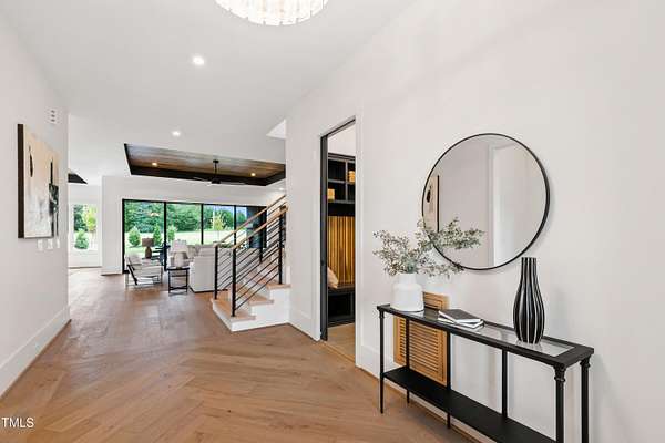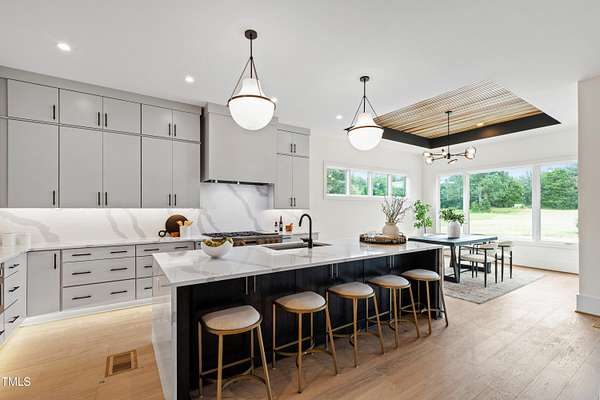 2025 Parade of Homes Entry-by award winning Ken Harvey Homes. Estate living on a 2+ acre pool-accommodating home site, in the gated community of Hidden Lake. Open-air amenities including an outdoor pavilion, clubhouse with veranda & fishing pier! Sealed crawl space, tankless water heater and 3-car garage with electric car charger and side-mount openers. Upgraded features, elegant finishes, 10-foot ceilings & hardwood flooring spans throughout the main living areas. Kitchen: offers Adler slab style perimeter cabinets, ''bianco calacatta'' quartz countertops and riser, large island with granite top and waterfall edge, Rutavi 33-inch workstation two-tiered ledge sink, Monogram 48-inch professional 6-burner gas range with griddle, microwave drawer and fully-integrated dishwasher. Huge hidden scullery with butcher block tops and built-in wine storage! Primary Suite: features hardwood flooring and a luxurious primary bath with tile flooring, maple slab vanity cabinets with ''pure white'' quartz, designer pendants, center linen tower, zero-entry wet room with spa-style shower and freestanding tub and walk-in closet with direct access to the laundry room! Family Room: Trey ceiling, linear gas fireplace with ''pearl minas'' porcelain tile surround and flanking floating cabinets and stacked sliders leading to the screened porch with brick surround fireplace, patterned flagstone and electronic phantom screen! Upstairs offers a private office/study with built-in desk area with quartz top and innovative free-power surface device charging, separate game room with wet bar & two additional bedrooms.