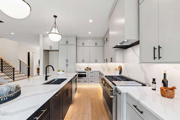 - Dishwasher, ENERGY STAR Qualified Appliances, Gas Range, Microwave, Plumbed For Ice Maker, Range Hood, Stainless Steel Appliance(s), Tankless Water Heater, Warming Drawer