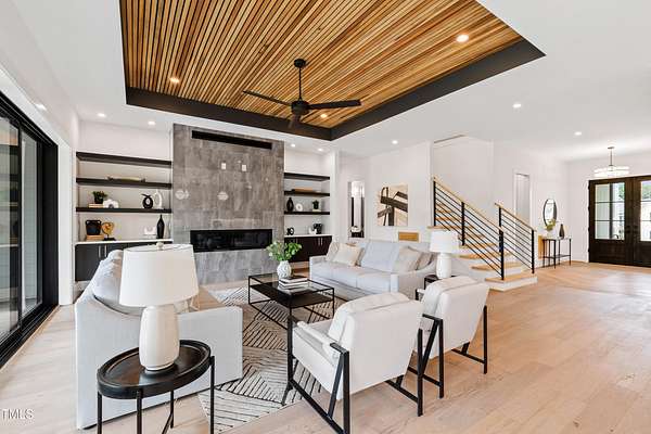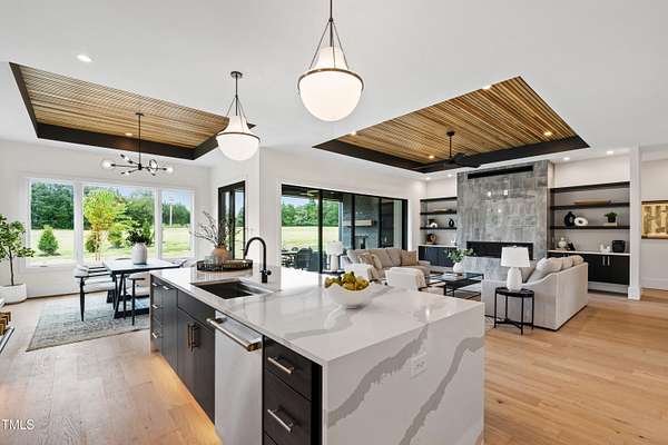 - Bathtub/Shower Combination, Bookcases, Breakfast Bar, Built-In Features, Ceiling Fan(s), Crown Molding, Double Vanity, Eat-In Kitchen, Entrance Foyer, Granite Counters, In-Law Floorplan, Kitchen Island, Natural Woodwork, Open Floorplan, Primary Downstairs, Quartz Counters, Separate Shower, Smart Thermostat, Soaking Tub, Tray Ceiling(s), Walk-In Closet(s), Walk-In Shower, Water Closet, Wet Bar