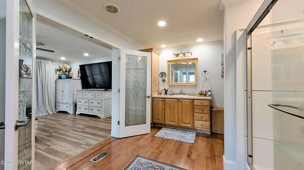 - Ceiling Fan(s), Commode Room, Double Vanity, Eat-In Kitchen, Entrance Foyer, Kitchen Island, Pantry, Tub Shower Combo, Walk-In Closet(s)