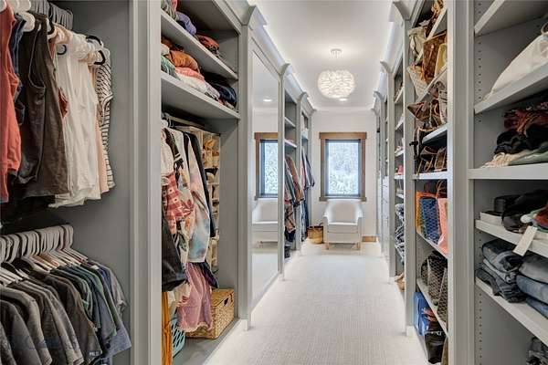 - Fireplace, Upper Level Primary, Vaulted Ceilings, Walk In Closets, Window Treatments