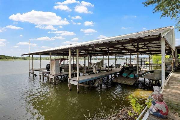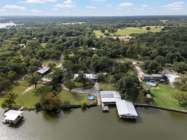 Life is better at the lake--and this property proves it! Welcome to your private retreat on Lake Limestone! This rare waterfront property offers 2.192 acres with 310 feet of shoreline, fully fenced with a gated entry and a paved driveway. The outdoor amenities set this property apart. A 45x40 boathouse with three slips and a private boat ramp provide direct access to the lake, an increasingly rare feature, as private ramps are no longer permitted to be built on Lake Limestone. The property also includes a fishing pier complete with a slide into the water and a sink for cleaning your catch, as well as a stainless steel fish feeder and a dedicated cleaning station. A set up every angler dreams of! The lakeside cabin makes lake life easy with its own kitchen and cozy bunk beds, giving guests or family their own private space to stay and play. Just outside, the massive 65x40 awning transforms into the heart of the property- a shaded retreat made for cookouts and evenings spent watching the sun set across the water. The above-ground pool offers another way to cool off on warm Texas afternoons. The 1,900 square foot home features two bedrooms, two bathrooms, a spacious sunroom overlooking the lake, and a cozy wood-burning fireplace that makes it the ideal spot for year round living or a weekend getaway. Additional features include a 60x30 metal shop with electricity, multiple storage buildings, two wells supplying water to the property, two covered carport spaces, and an outhouse! Whether you're looking for a permanent residence, a weekend escape, this property is built for enjoying lake life to the fullest. With features that can no longer be replicated, like the private ramp and expansive boathouse. This is a rare opportunity to own a one-of-a-kind waterfront property on Lake Limestone.