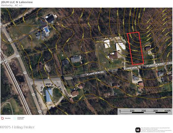 Est $206/mo.59 acre lot in Brooks KY near I-65 interchange. Lot rises from road. Wooded lot buyer to verify utilities and availability. 280 N Lakeside is NOT the mailing address, this is used to help locate the lot between two other properties. Site plan has been completed buy Bullitt co Dept of Health