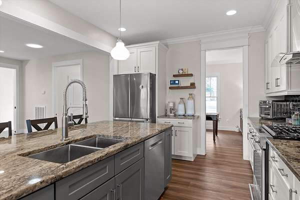 Welcome to 280 Pine Ridge, located in the highly sought-after Grand View neighborhood on Signal Mountain. This home has 5.4 acres tucked away on a private cul-de-sac with only five other homes. This wooded lot, is beautifully landscaped and offers a peaceful retreat with a long winding driveway, with ample parking, an oversized two-car garage, and an attractive stone and Hardie plank exterior. A flagstone walkway leads to the inviting covered front porch, The new fully farm fenced front yard adds both charm and functionality, perfect for children and pets. Inside, you'll find 9-foot ceilings, new flooring, oversized all-wood Pella windows, and fresh paint throughout, creating a bright and welcoming atmosphere. The formal dining room features a new custom built-in buffet with butcher block surface and a sparkling chandelier. The living room offers an open floor plan with recessed lighting, ideal for entertaining or everyday living. An adjoining bonus room or office provides a light-filled space with serene views of the surrounding woods. The open-concept kitchen is designed for gathering and functionality, complete with granite countertops, brand-new stainless steel kitchen aid five-burner gas range, vent hood, oversized island with seating, pendant lighting, soft-close cabinetry. The main level includes three spacious bedrooms, plus upstairs offers a fourth bedroom that works perfectly as a teen suite, guest room, media space, or bonus room. This room also offers access to a large walk-out attic, ideal for storage or potential future expansion. Bathrooms have been updated with new vanities, sinks, faucets, and fixtures. The HVAC and septic systems have both been inspected and serviced for optimal performance. Outdoor living is abundant with a covered back porch, flagstone steps leading to a butterfly garden, and a circular brick fire pit perfect for cozy evenings surrounded by nature. The over 1,400-square-foot walkout basement offers exceptional