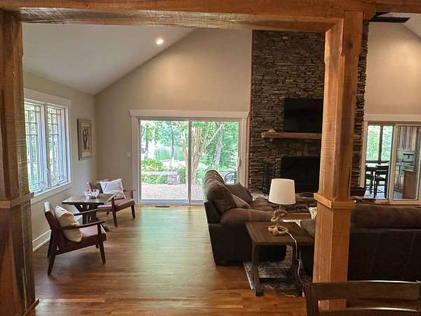 Unique waterfront property on Cypress Bay with 11.7 acres. 3 bedroom 2 bath brick home. Two boat docks - One 2-slip covered, one 2-slip open boat dock. Located only 2 miles from The Breakers Marina, approximately 5 miles from Paris Landing State Park, 6 miles from Land Between the Lakes US Forest Service Recreational Area. One hour and forty minutes to Nashville. Located in Henry County, rated one of the top places to retire in Tennessee. Private, secluded setting, with beautiful views of sunrises. Custom built brick home. Amenities include: vaulted ceiling, massive stone fireplace from floor to ceiling, hardwood floors, home was remodeled in 2025. Gravel drive down to the boat docks and lake. Screened porch with sink and built-in cabinets face the water, open patio faces the water, sliding doors provide a lake view from the kitchen and living room, massive wood beams, walk-in shower. Being sold fully furnished. All appliances, including refrigerator, stove, dishwasher and washer/dryer. Double, attached carport, central heat and air, shingle roof, well water. This property consists of 5 separate parcels with several hundred feet frontage on Kentucky Lake. Parcels 13.00, 14.00 and 33.00 join TVA and are subject to 375/381 foot elevation building restrictions. Parcels 19.00 and 20.00 give another way of accessing the property. This is a perfect set up for a family compound or get-a-way. There are multiple building sites. Also included is deeded access to subdivision common area (Lot 29) and boat ramp (Lot 66). Minor maintenance and access fee applies for Lot 66. Conveniently located just minutes from Paris, TN and Murray, KY, top rated schools, shopping and dining, this home and acreage delivers unbeatable value, location and lifestyle. Qualified Buyers only. Call today for your private showing.