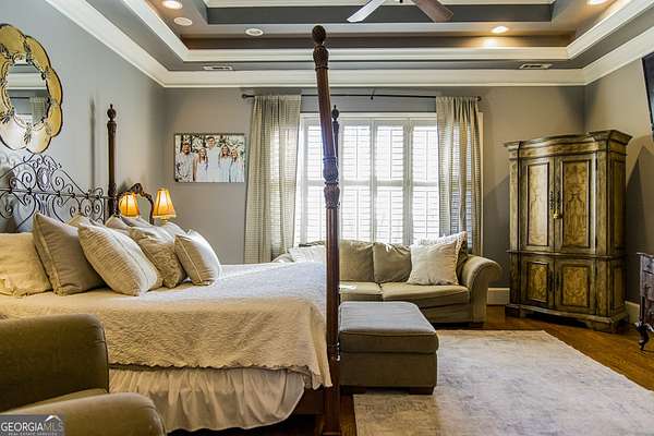 - Double Vanity, High Ceilings, Master On Main Level, Separate Shower, Soaking Tub, Tile Bath, Tray Ceiling(s), Vaulted Ceiling(s), Walk-In Closet(s)