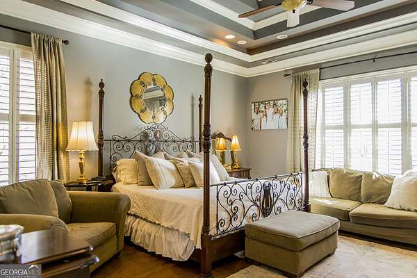 - Double Vanity, High Ceilings, Master On Main Level, Separate Shower, Soaking Tub, Tile Bath, Tray Ceiling(s), Vaulted Ceiling(s), Walk-In Closet(s)